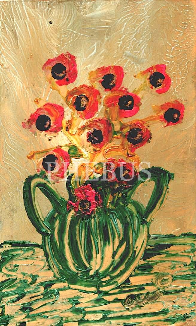 Metin Eloğlu´nun "Ali" imzasıyla kâğıt üzerine yağlıboya çiçek çizimi, 8x14 cm