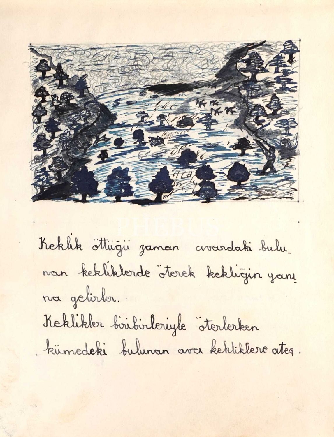 Hasan hocanın, talebeleri resime alıştırmak için verdiği ödevlerden oluşan bu çalışmada Muzaffer Demir´e ait 11 adet tükenmez kalem çizimleri bulunmaktadır.