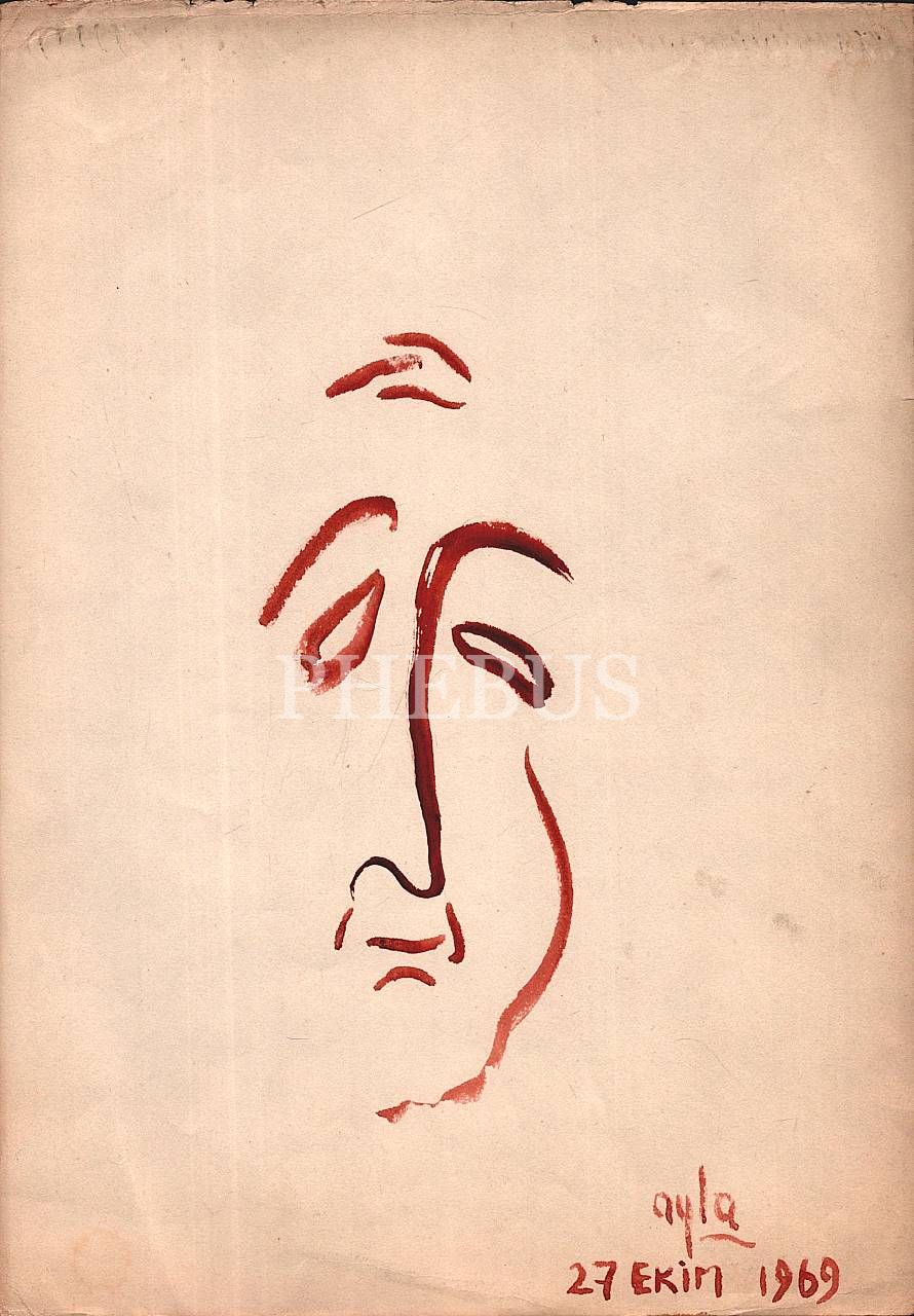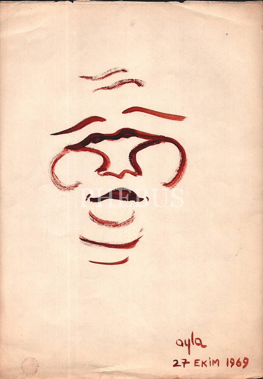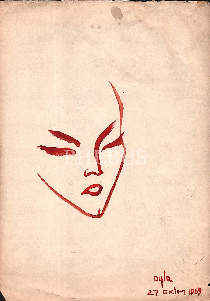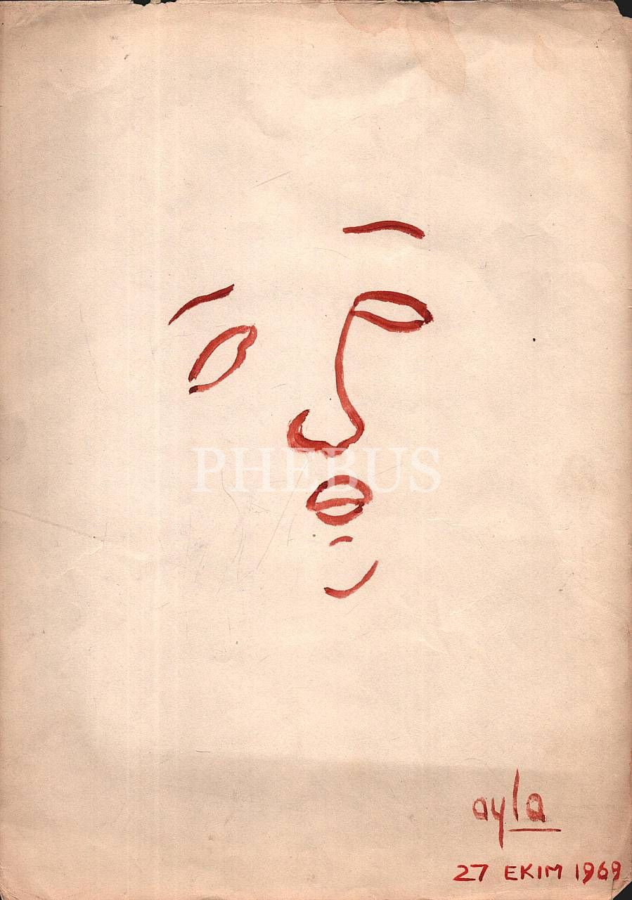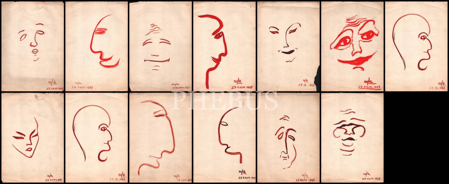 "Ayla" imzalı kâğıt üzerine suluboya yüz çizimleri, 12 adet, 27 Ekim 1969, 24x33 cm