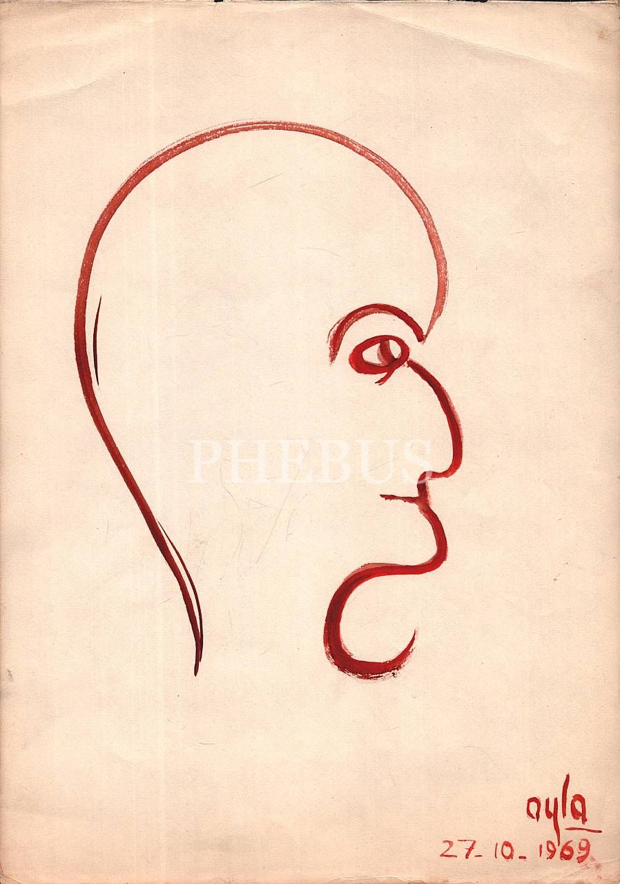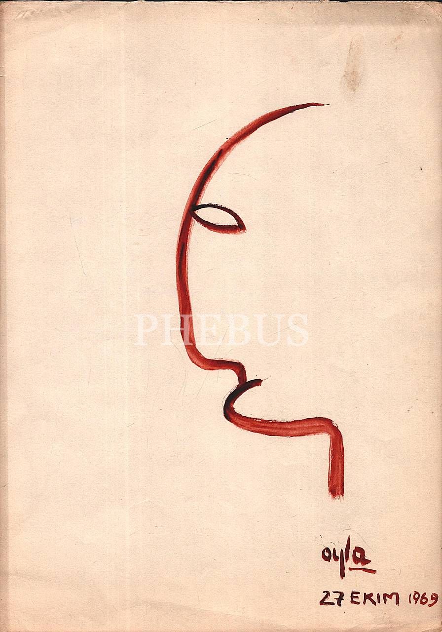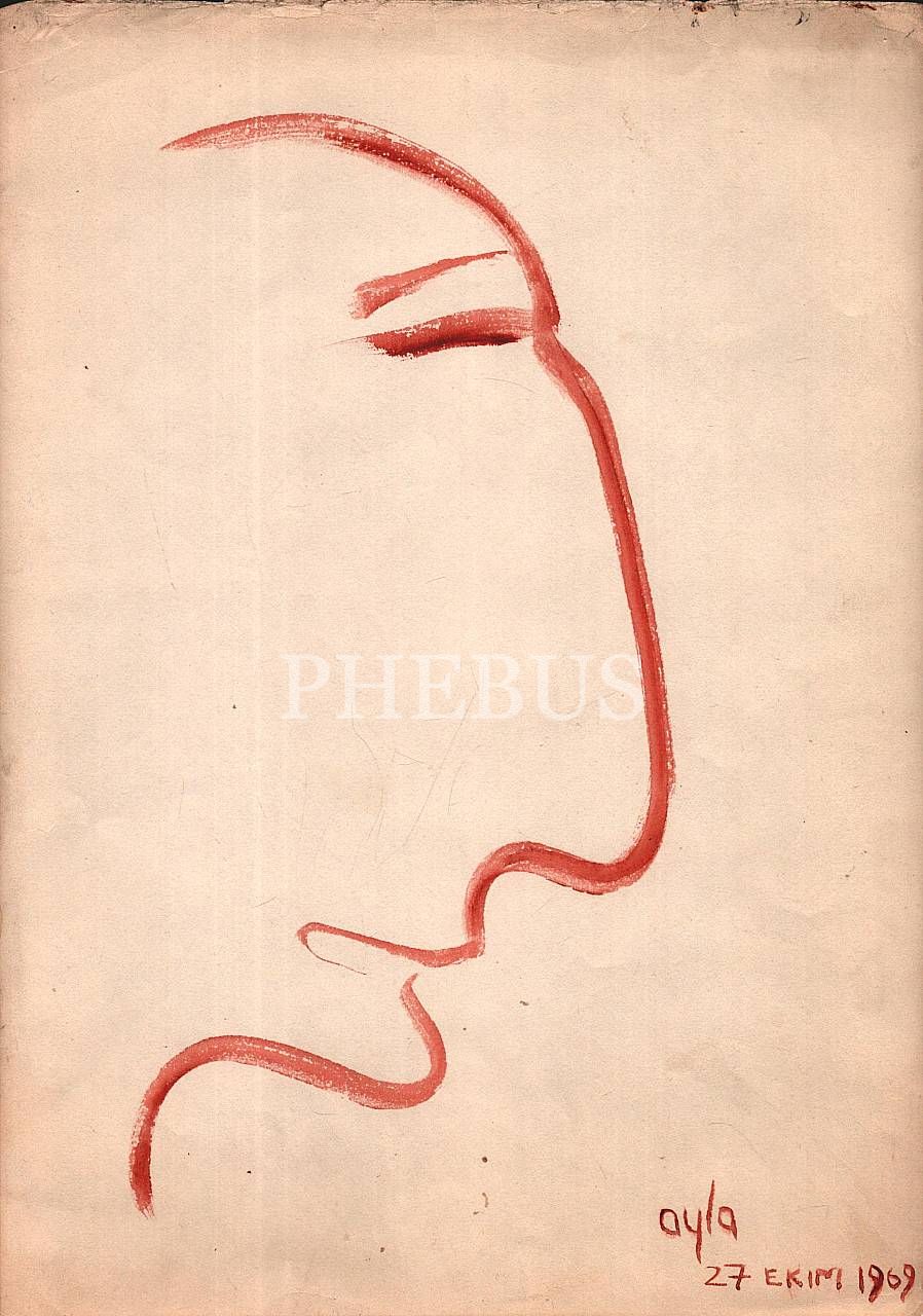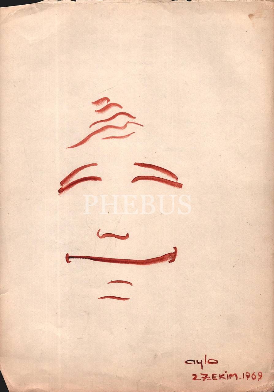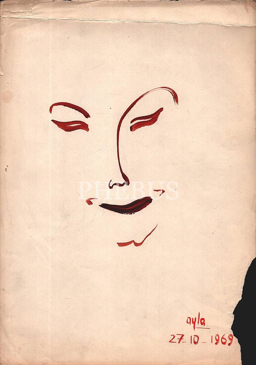 "Ayla" imzalı kâğıt üzerine suluboya yüz çizimleri, 12 adet, 27 Ekim 1969, 24x33 cm