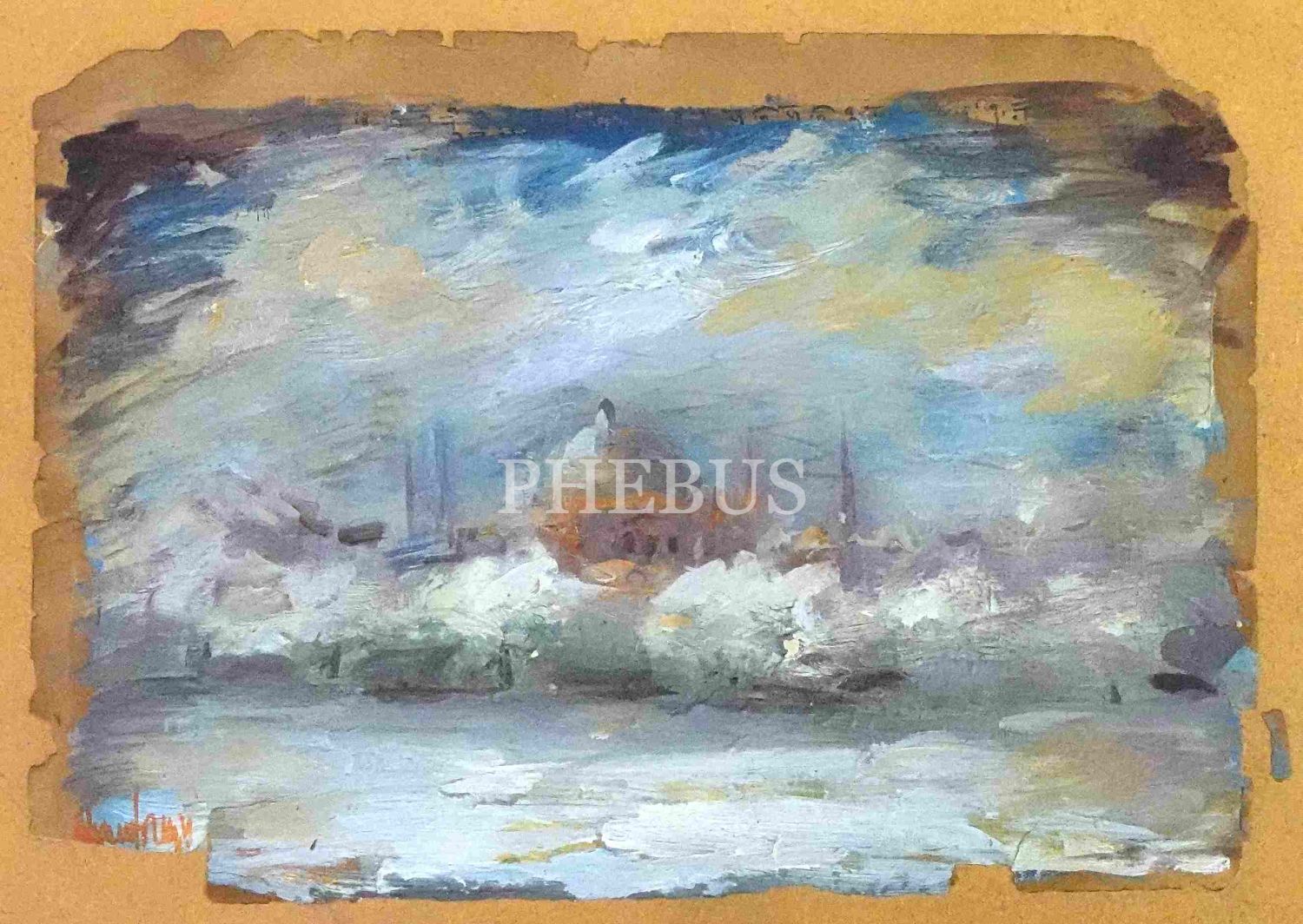 Mdf üzerine guaj boya Ayasofya Cami çalışması, imzalı, 30x35 cm