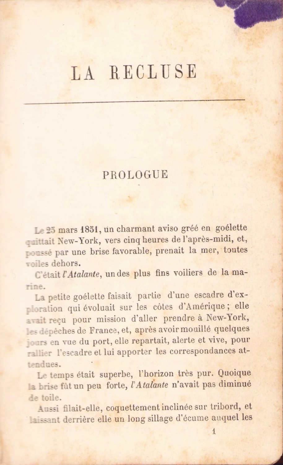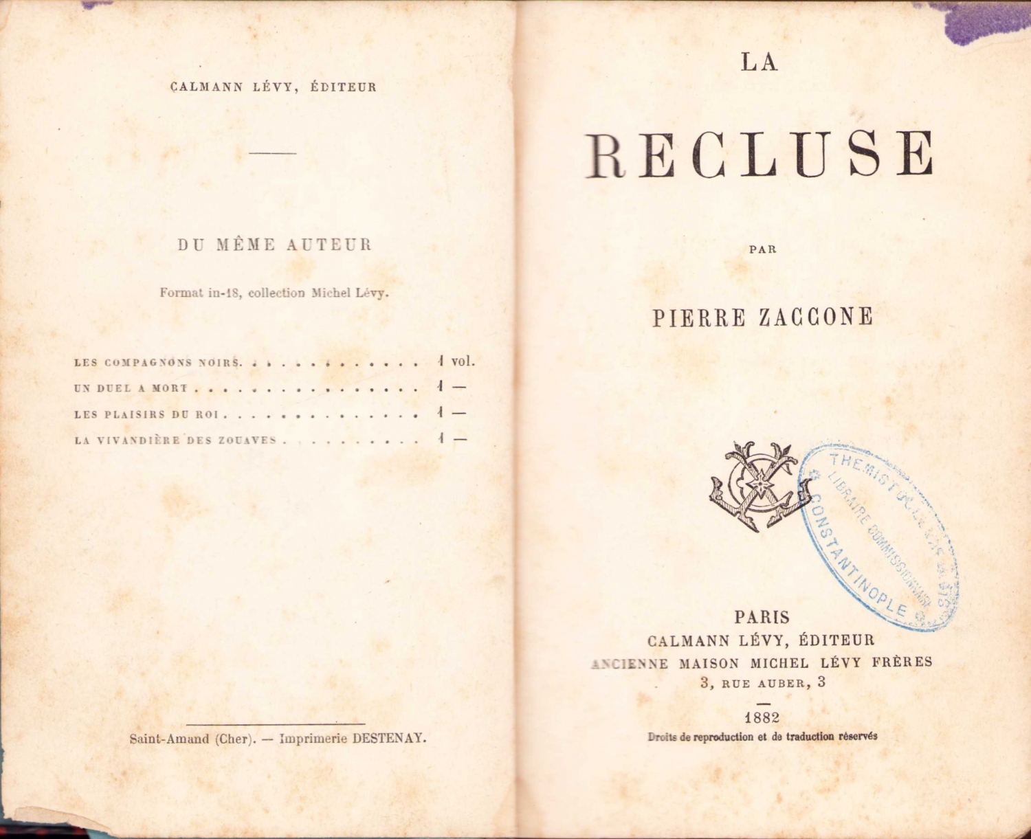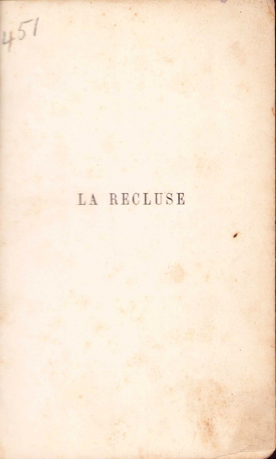 La Recluse, Pierre Zaccone, Paris, 1881, Fransızca, 330 sayfa, 11x17 cm