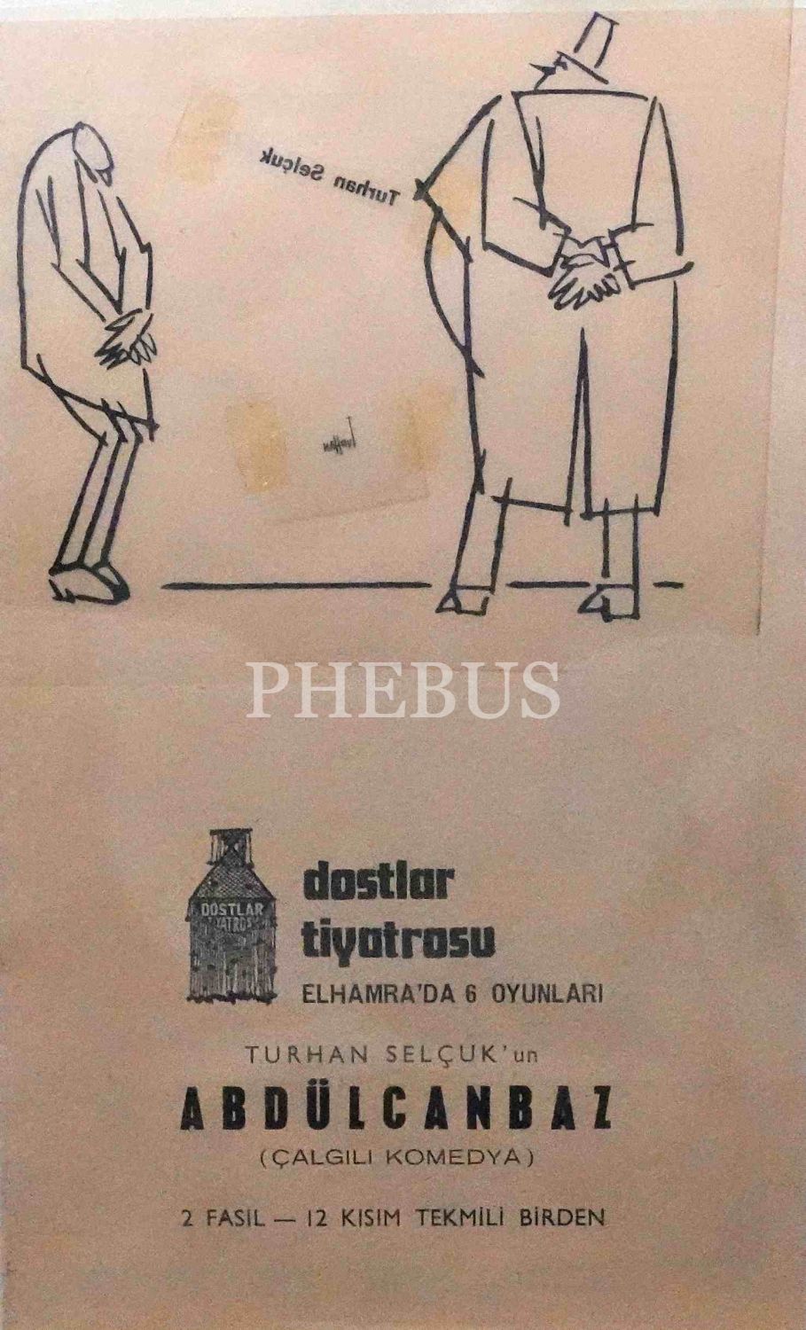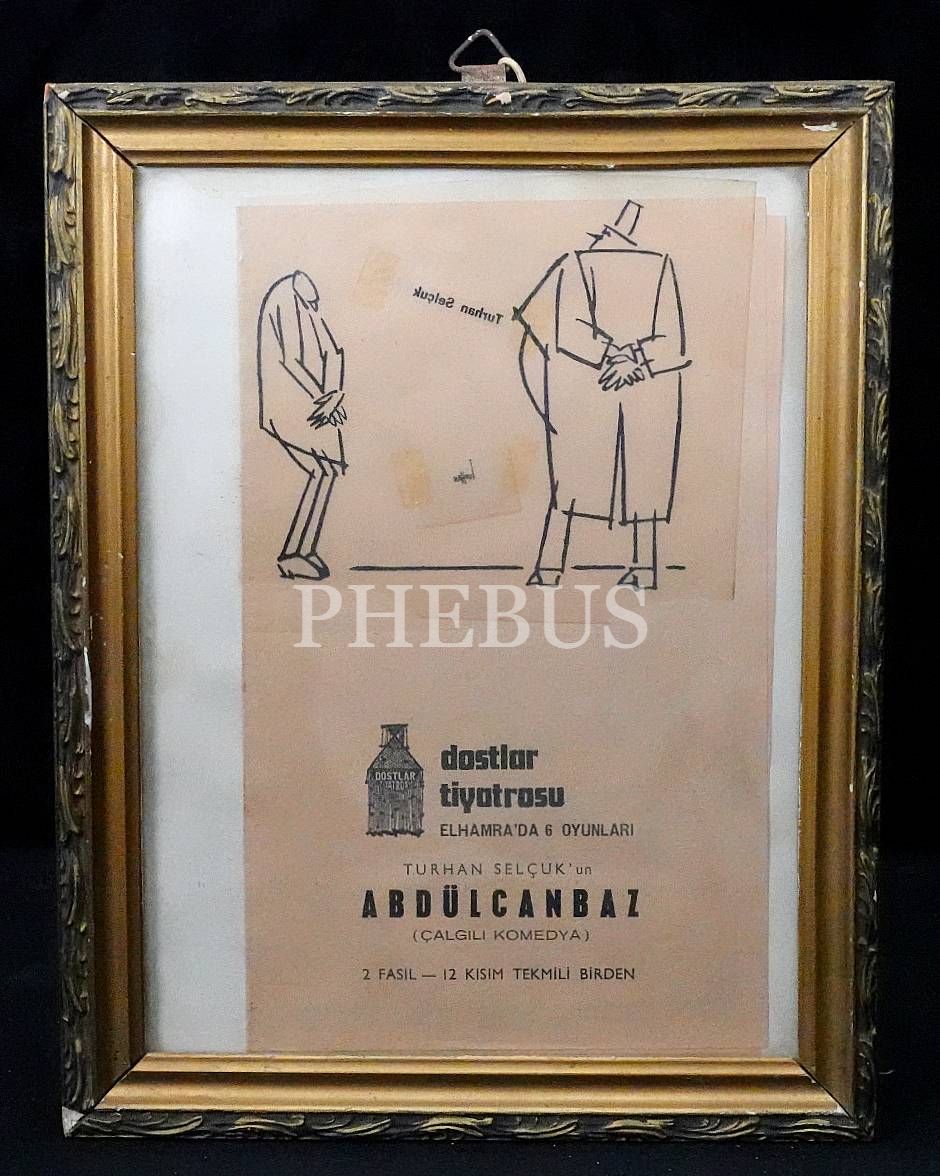 Turhan Selçuk´un hayat verdiği efsane çizgi roman kahramanı Abdülcanbaz´ın Dostlar Tiyatrosu´nda oynanacak çalgılı komedyası için hazırlanan el ilanının orijinal çizimi, çerçevesiyle birlikte 22x28 cm