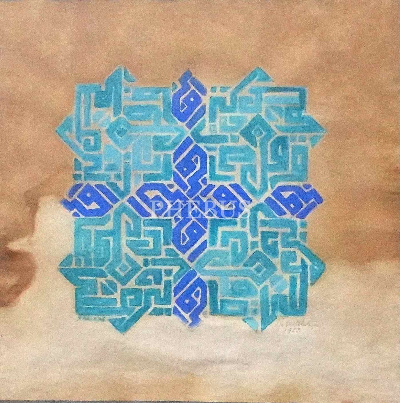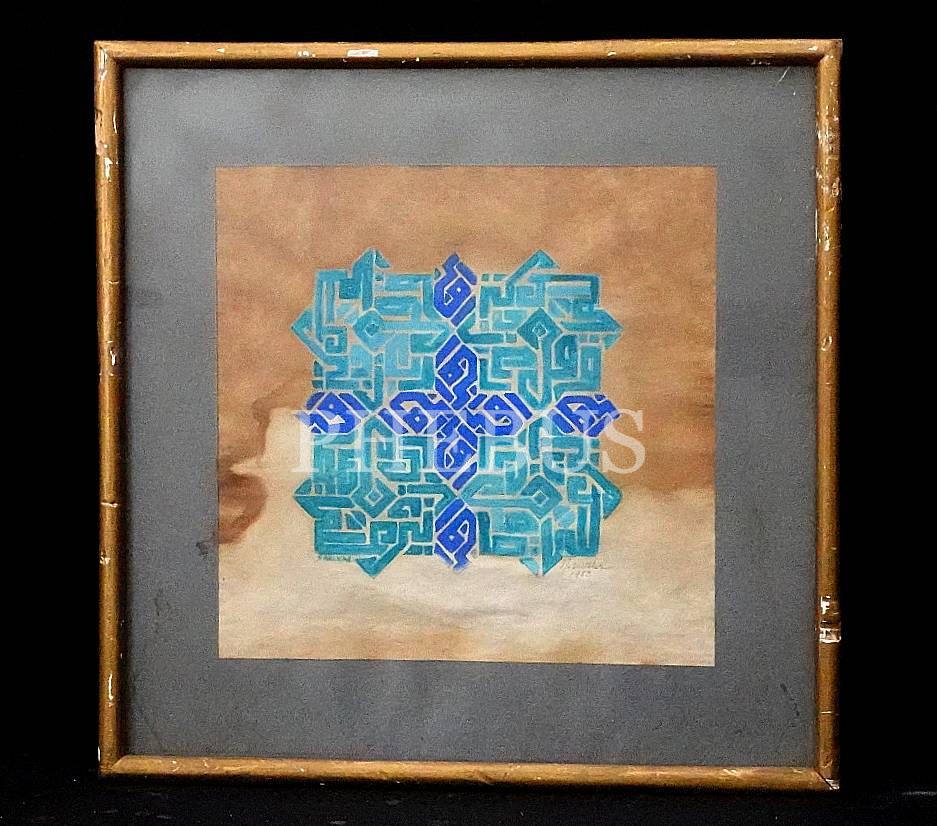 N. Wittler tarafından imzalı kâğıt üzerine zincir geçme çini desenli makıl´î yazı, 1983, 28x28 cm
