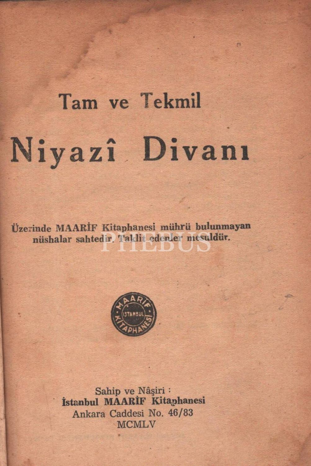 Tam ve Tekmil NİYAZÎ DİVANI, İstanbul Maarif Kitaphanesi, 1955, 144 sayfa, 15x22 cm