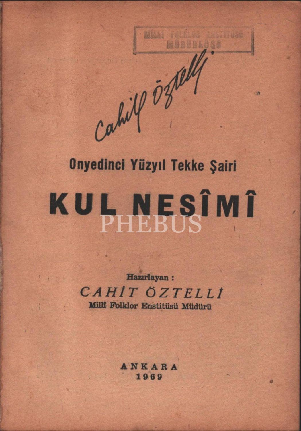 Hazırlayan Cahit Öztelli´den imzalı Onyedinci Yüzyıl Tekke Şairi KUL NESÎMÎ, Töyko Matbaası, Ankara - 1969, 120 sayfa, 14x20 cm