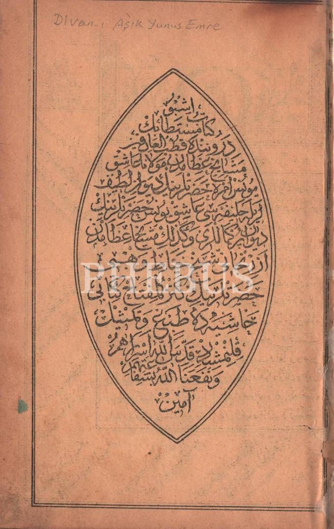 DÎVÂN-I ÂŞIK YÛNUS EMRE, derkenar olarak KENZÜ´L-MİFTÂH, Şeyh Hayyat Vehbi Erzincani, 1320, 188 sayfa, 15x23 cm