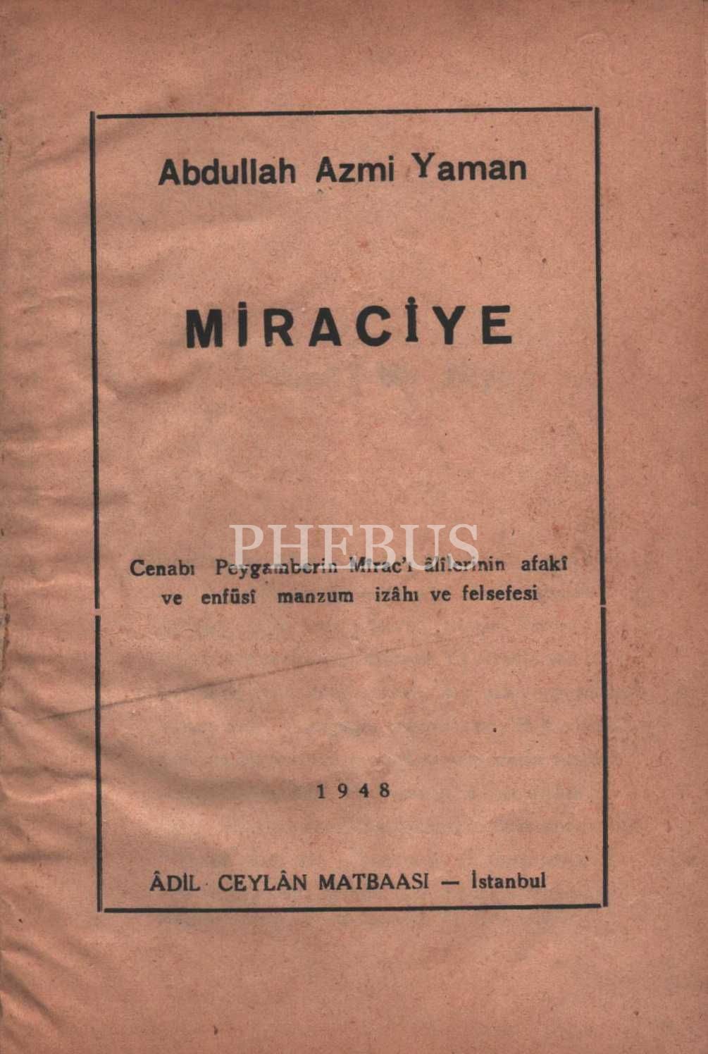 MİRACİYE, Abdullah Azmi Yaman, Âdil Ceylan Matbaası, İstanbul - 1948, 31 sayfa, 14x20 cm