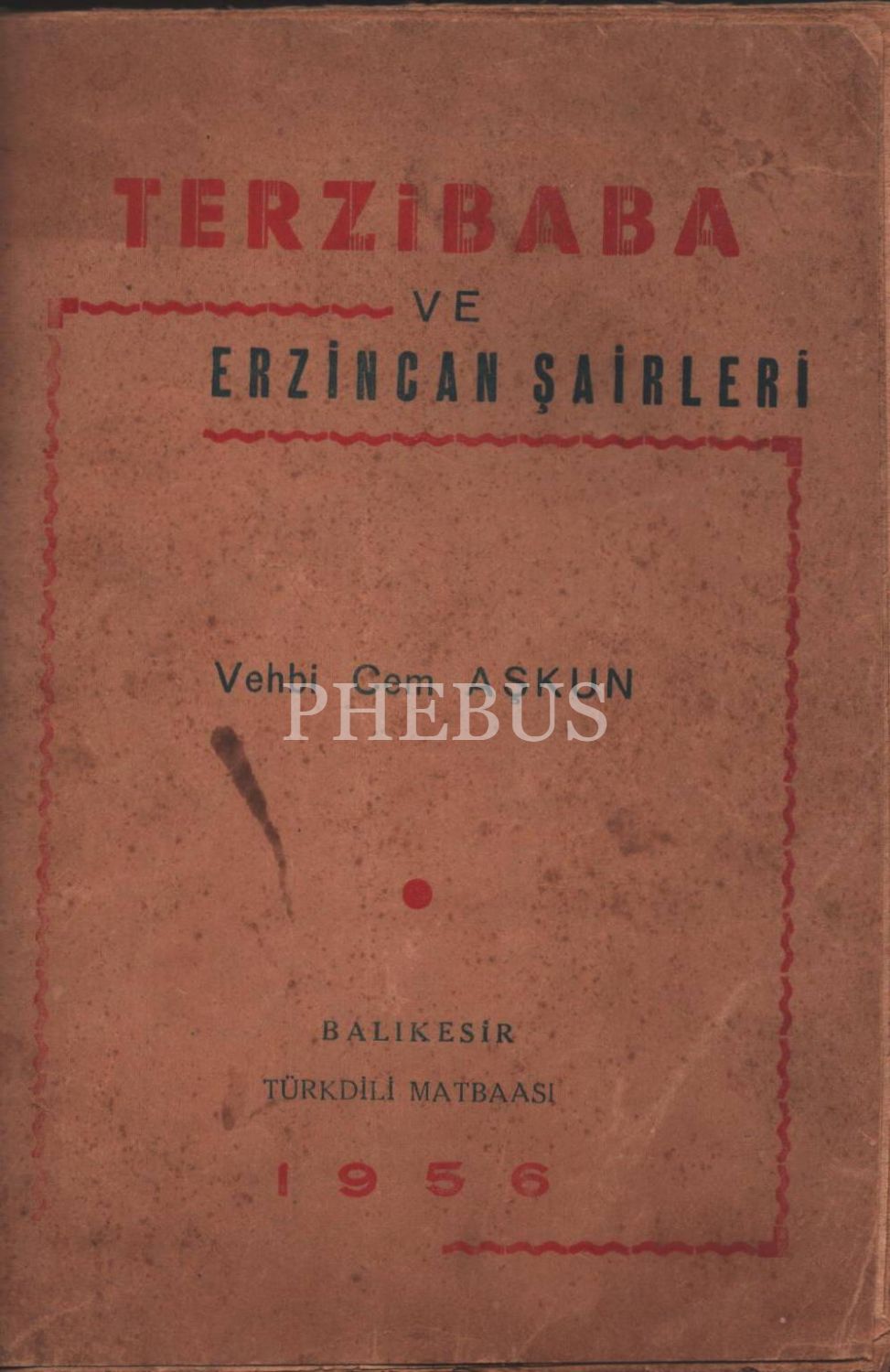 TERZİBABA VE ERZİNCAN´IN MUTASAVVUF ŞAİRLERİ, Vehbi Cem Aşkun, Türkdili Matbaası, Balıkesir - 1956, 60 sayfa, 15x20 cm