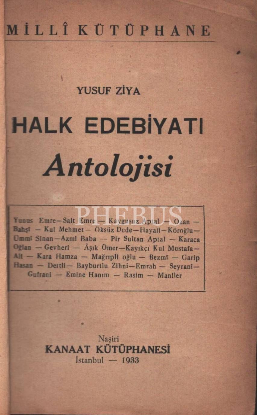 HALK EDEBİYATI ANTOLOJİSİ, Yusuf Ziya, Kanaat Kütüphanesi, İstanbul - 1933, 75 sayfa, 12x18 cm