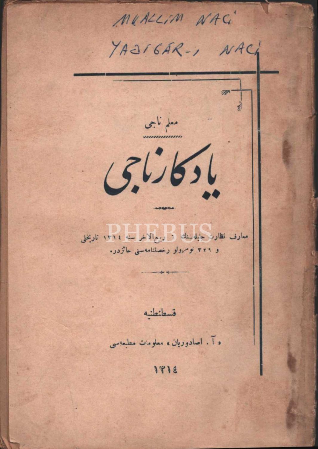 YÂDİGÂR-I NÂCÎ, Muallim Naci, A. Asaduryan Malumat Matbaası, İstanbul 1314, 112 sayfa, 15x21 cm