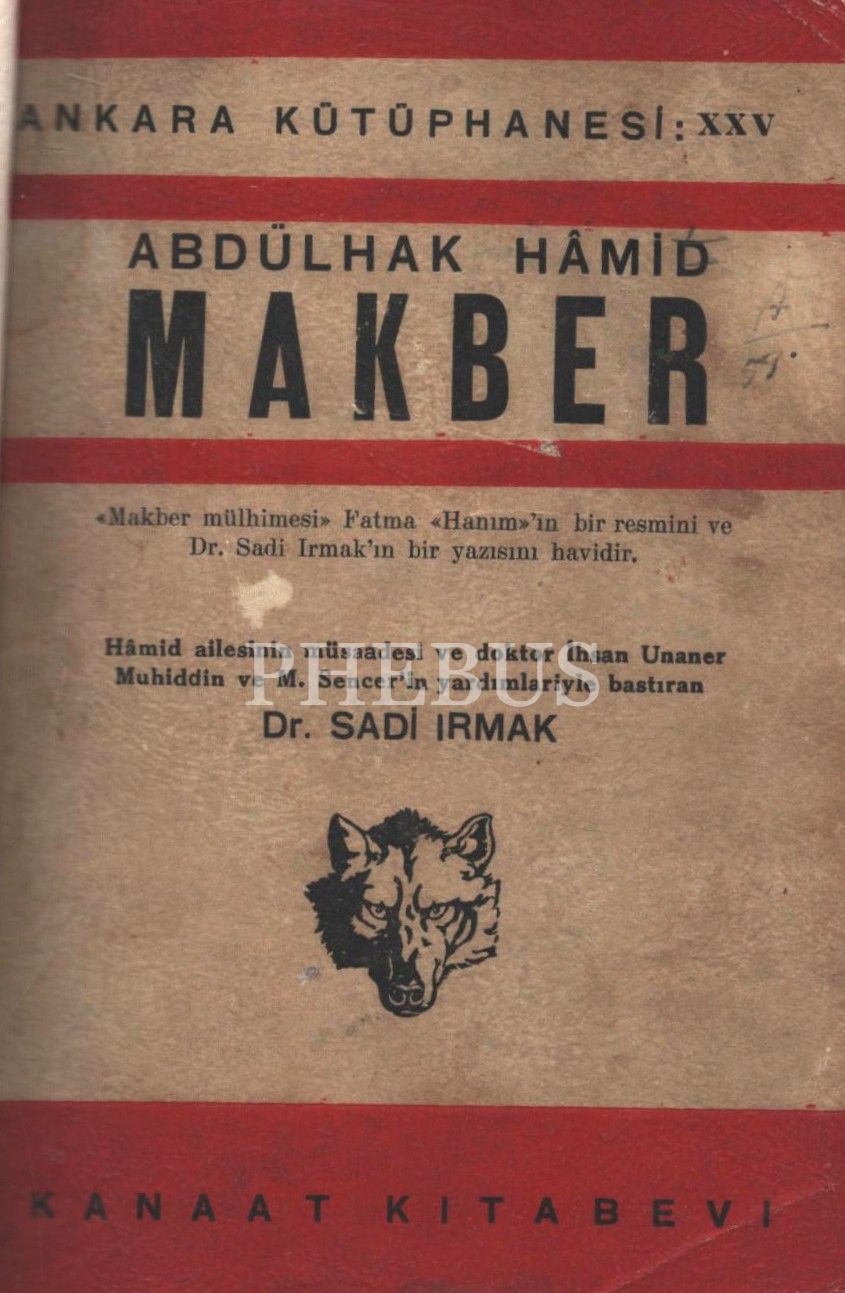 MAKBER, Abdülhak Hâmid, bastıran: Dr. Sadi Irmak, Kanaat Kitabevi, 128 sayfa, 13x18 cm