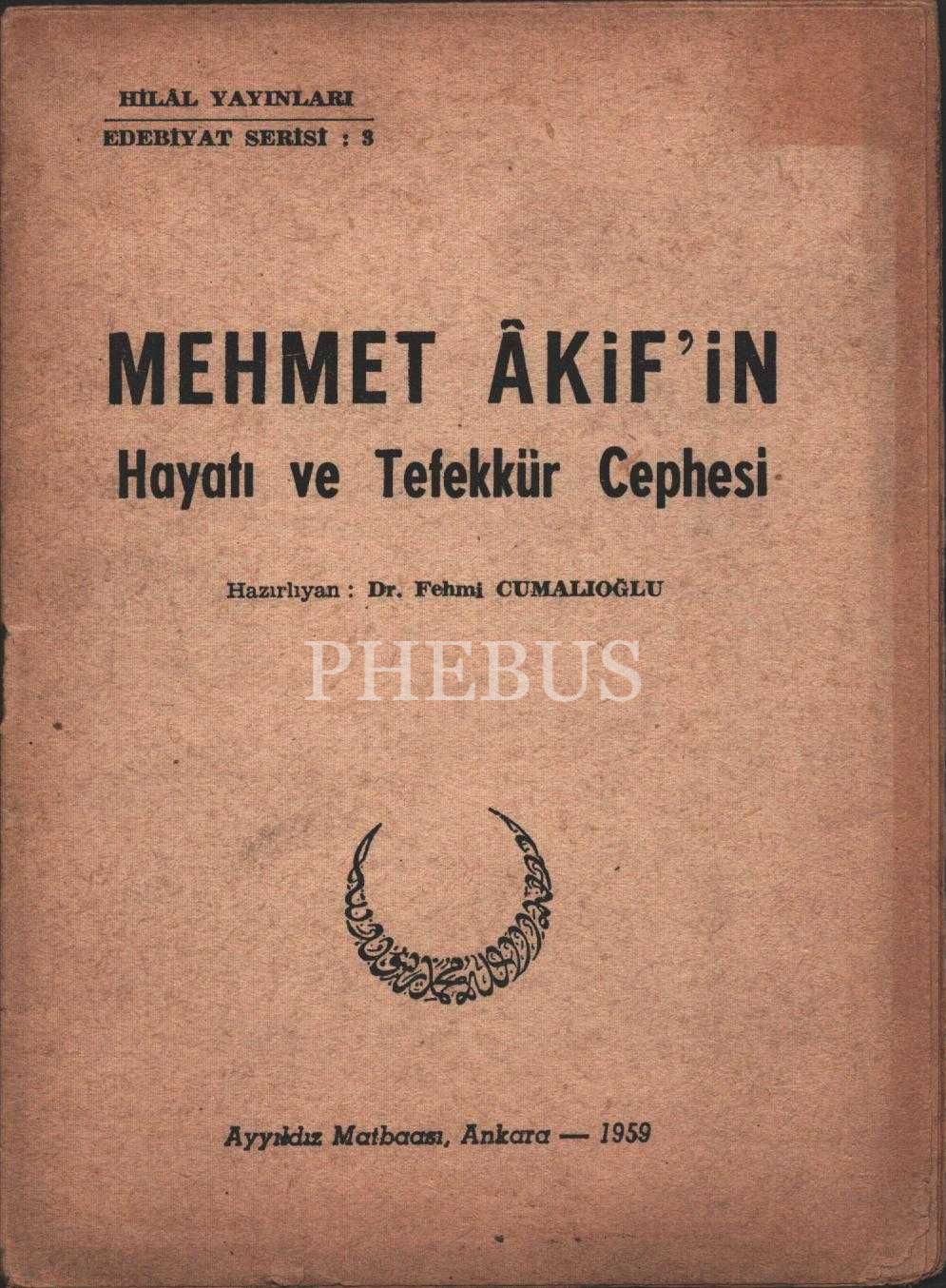 MEHMET ÂKİF´İN HAYATI VE TEFEKKÜR CEPHESİ, hazırlıyan: Dr. Fehmi Cumalıoğlu, Ayyıldız Matbaası, Ankara - 1959, 21 sayfa, 12x17 cm