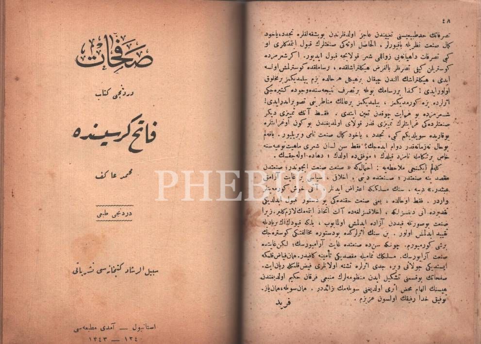 SAFAHÂT, Mehmed Âkif, İstanbul 1342-43, 214+61+48+88+91+132 sayfa, 13x17 cm
