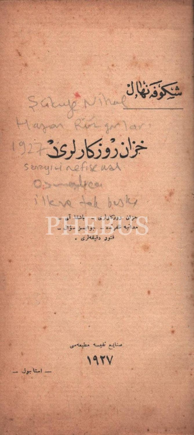 HAZÂN RÜZGÂRLARI, Şükûfe Nihal, Sanayi-i Nefise Matbaası, İstanbul 1927, 69 sayfa, 10x20 cm