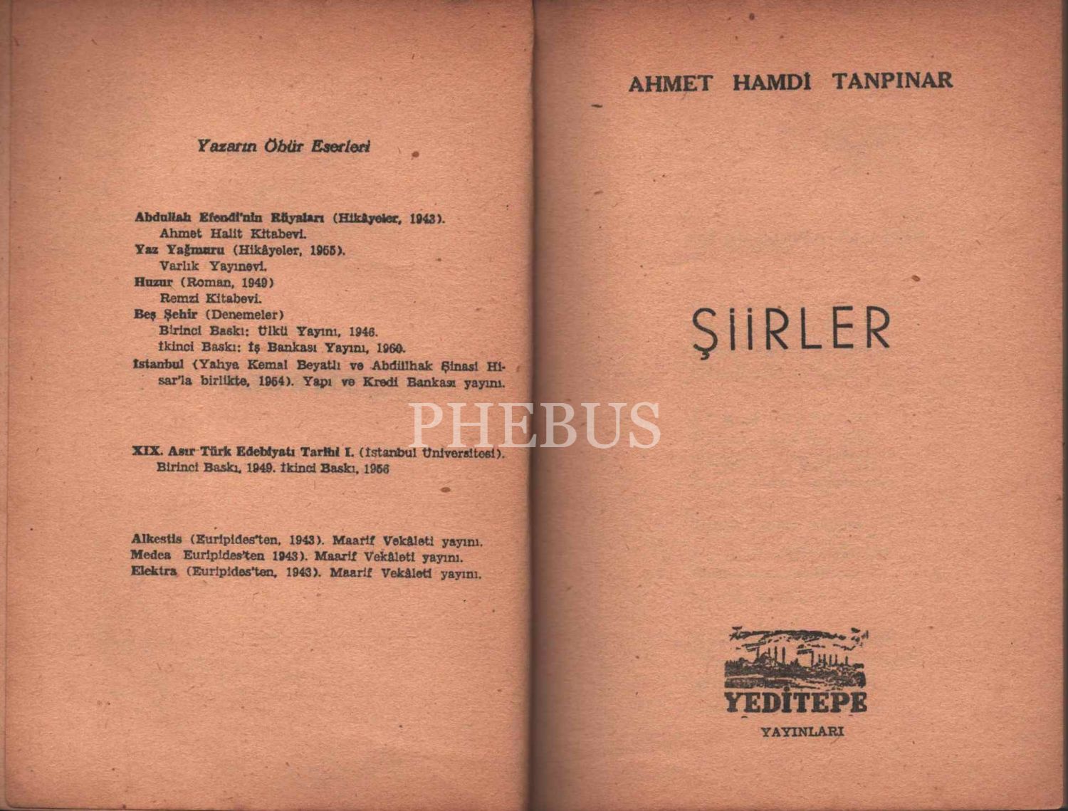 ŞİİRLER, Ahmet Hamdi Tanpınar, Yeditepe Yayınları, İstanbul - 1956, 76 sayfa, 14x20 cm