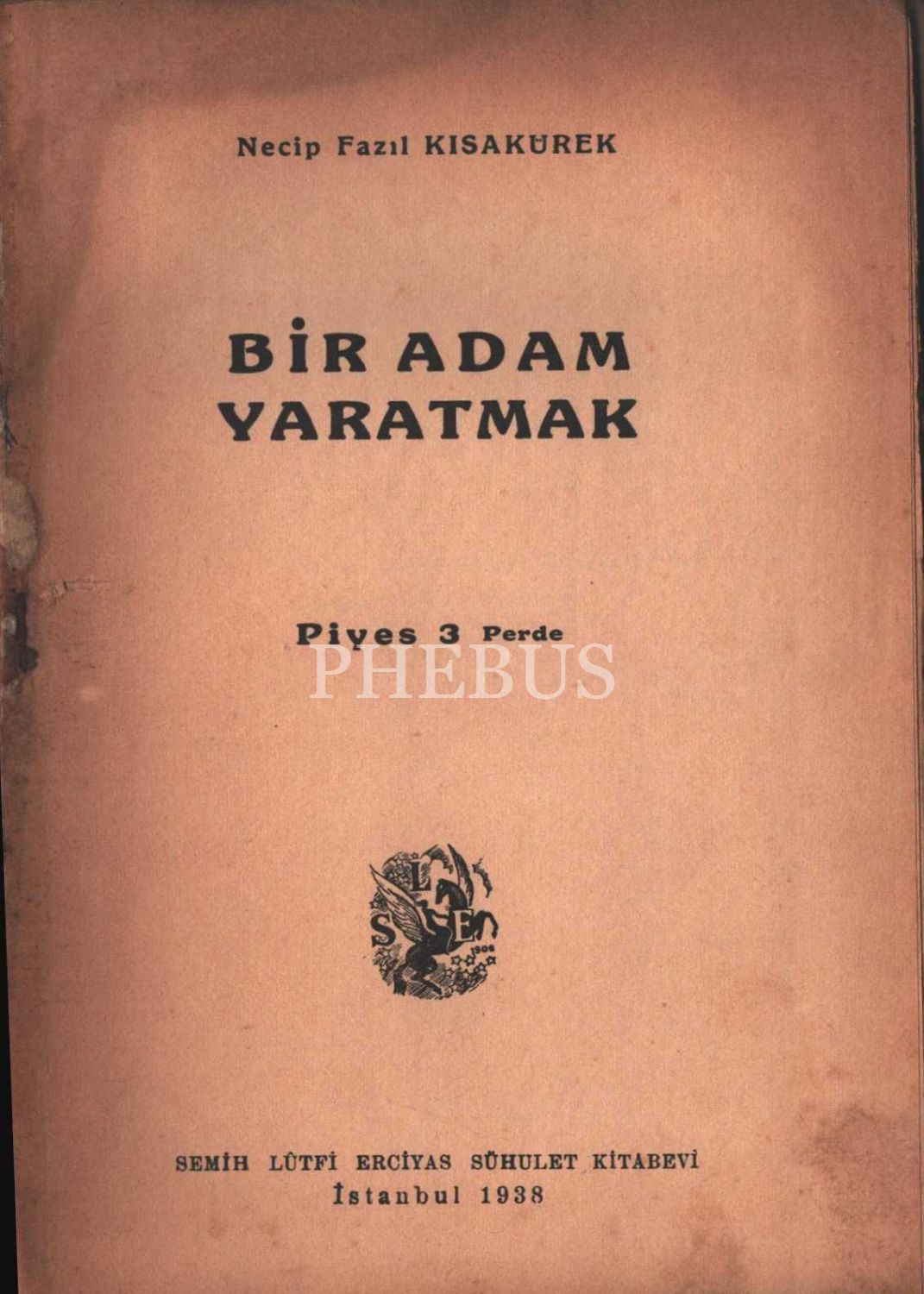 BİR ADAM YARATMAK (Piyes: 3 Perde), Necip Fazıl Kısakürek, Semih Lûtfi Erciyas: Sühulet Kitabevi, İstanbul - 1938, 101 sayfa, 15x20 cm