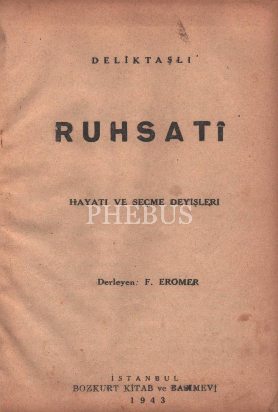 2 kitap bir arada: DELİKTAŞLI RUHSATÎ (Hayatı ve Seçme Deyişleri), derleyen: F. Erömer, Bozkurt Kitab ve Basımevi, İstanbul - 1943 & TÜRKLÜĞÜN GELECEĞİ, Dr. Tevfik Zarakol, Güven Basımevi, İstanbul - 1939, 15 sayfa, 14x19 cm