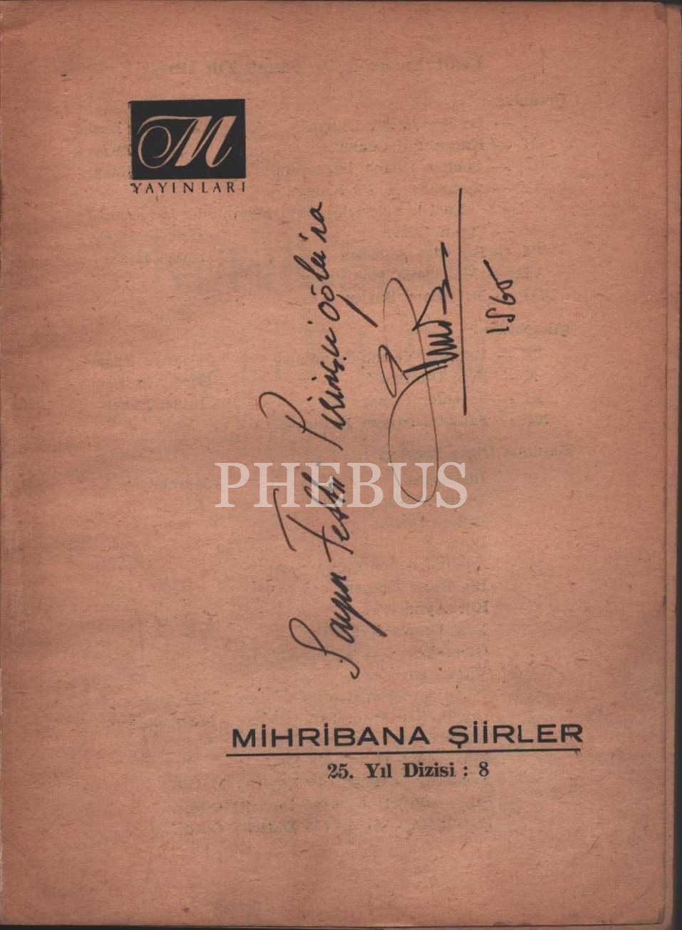 Ümit Yaşar Oğuzcan´dan ithaflı ve imzalı MİHRİBANA ŞİİRLER & MEKTUPLAR, Bateş Bayilik Teşkilâtı, İstanbul - 1965, 12x17 cm