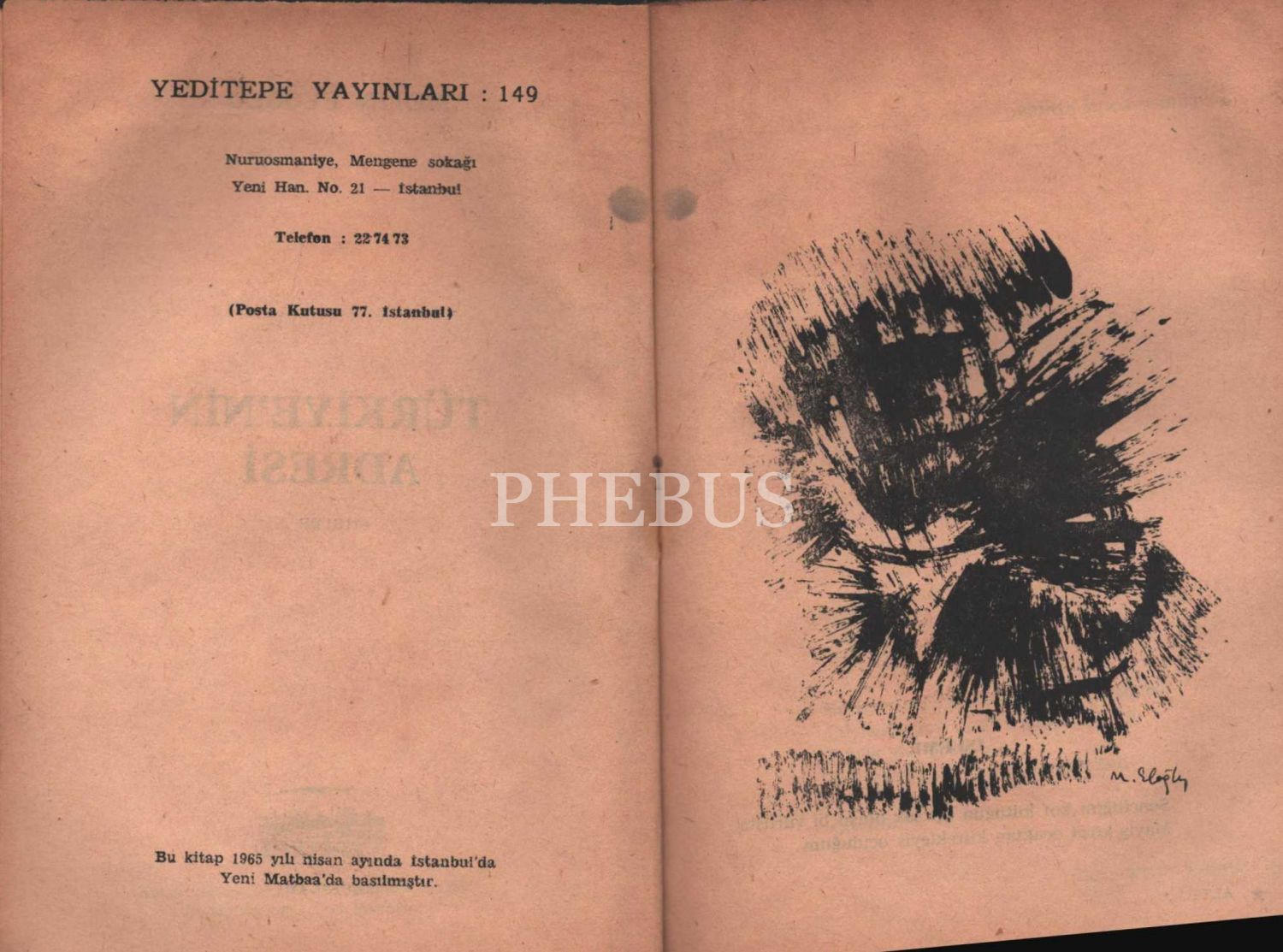 TÜRKİYE´NİN ADRESİ (Şiirler), Metin Eloğlu, Yeditepe Yayınları, İstanbul - Nisan 1965, 43 sayfa, 14x20 cm