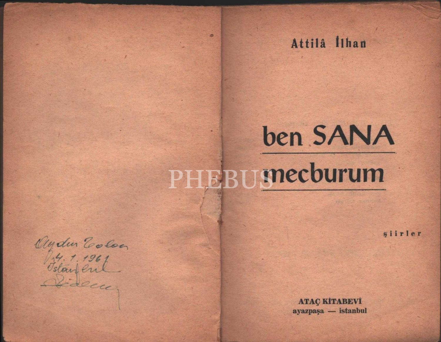 BEN SANA MECBURUM (Şiirler), Attilâ İlhan, Ataç Kitabevi, İstanbul - 1960, 109 sayfa, 12x17 cm