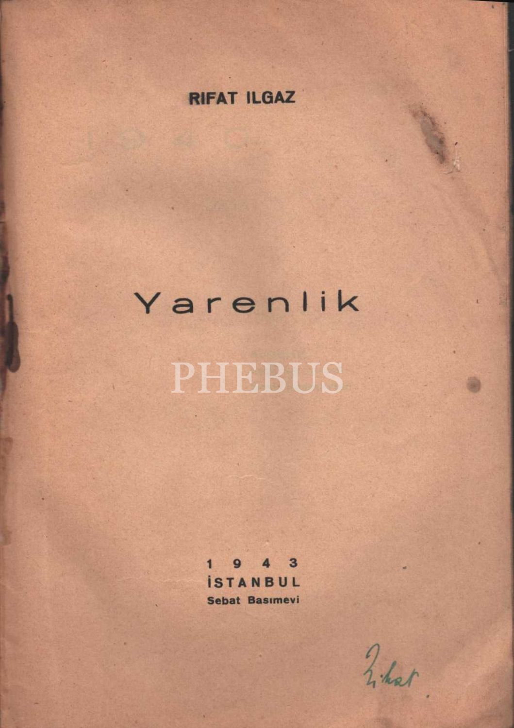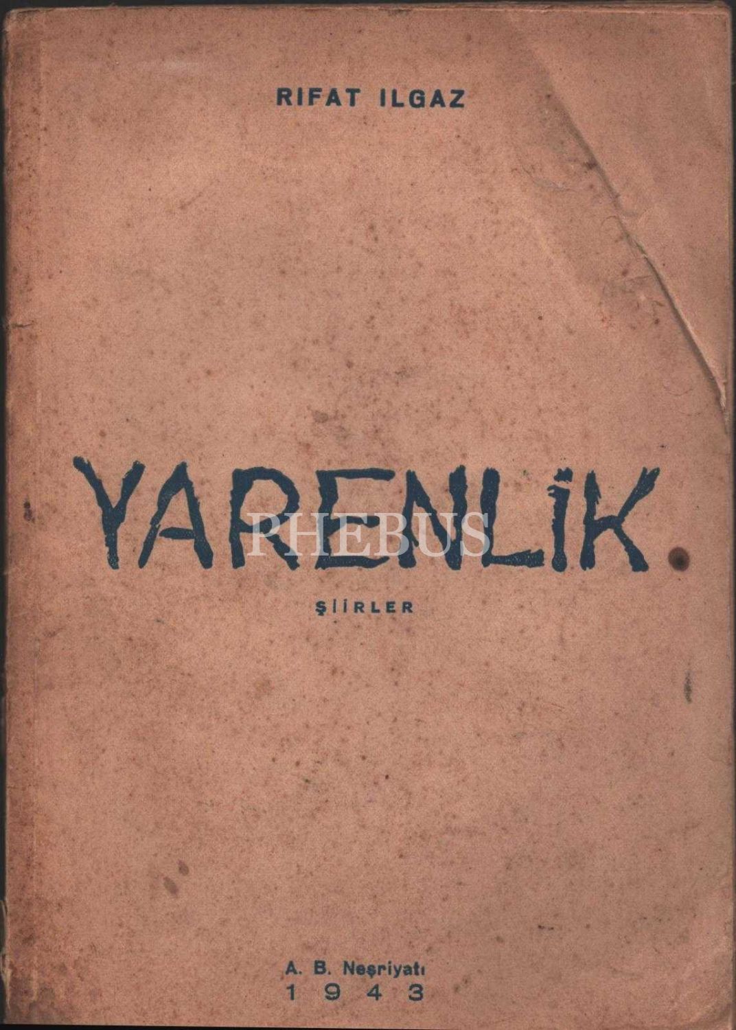 YARENLİK (Şiirler), Rıfat Ilgaz, A.B. Neşriyatı, İstanbul - 1943, 48 sayfa, 15x21 cm