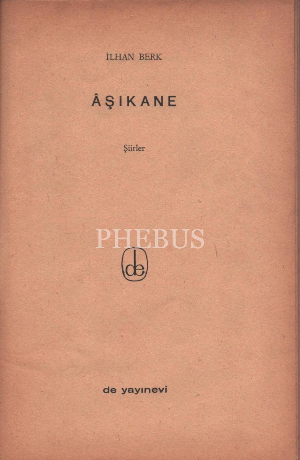 ÂŞIKANE (Şiirler), İlhan Berk, De Yayınları, Nisan 1968, 46 sayfa, 14x20 cm