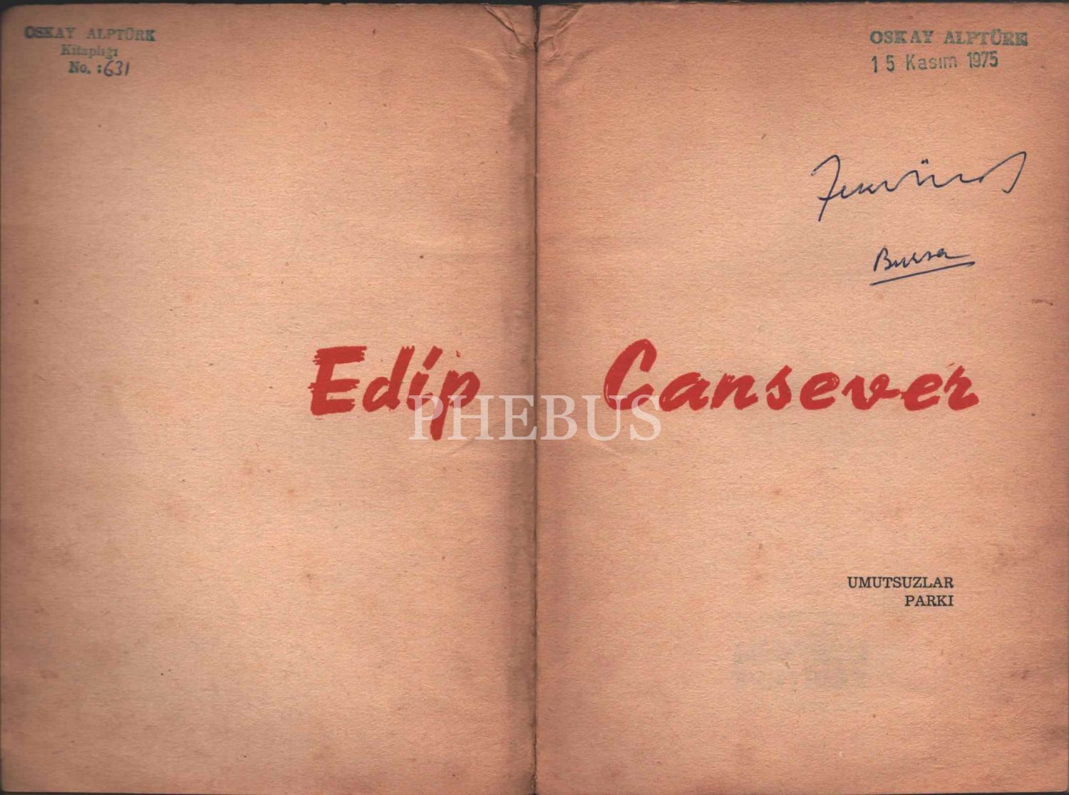 UMUTSUZLAR PARKI, Edip Cansever, Yeditepe Yayınları, İstanbul - Aralık 1958, 77 sayfa, 14x20 cm