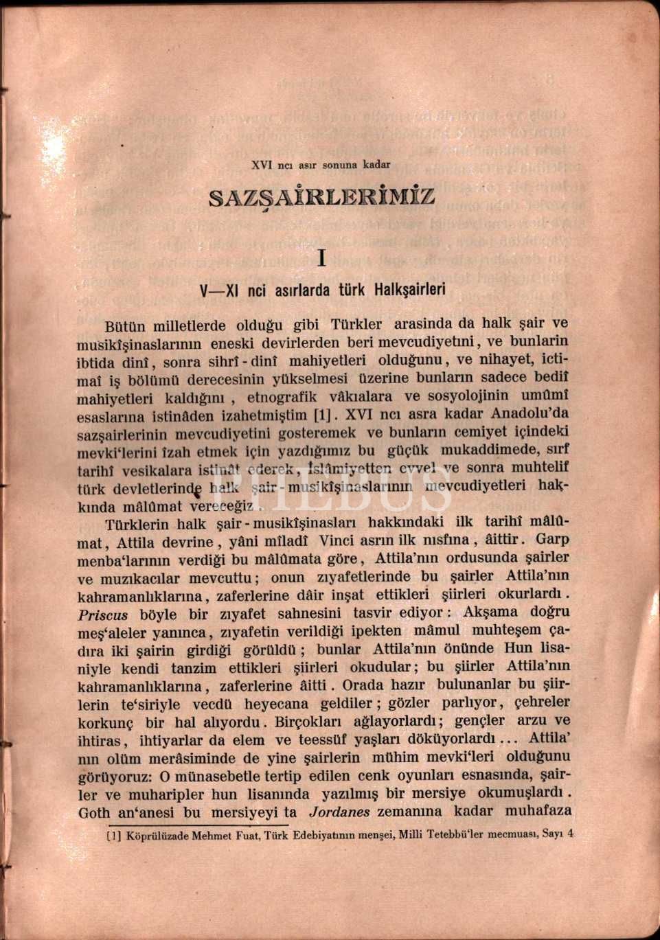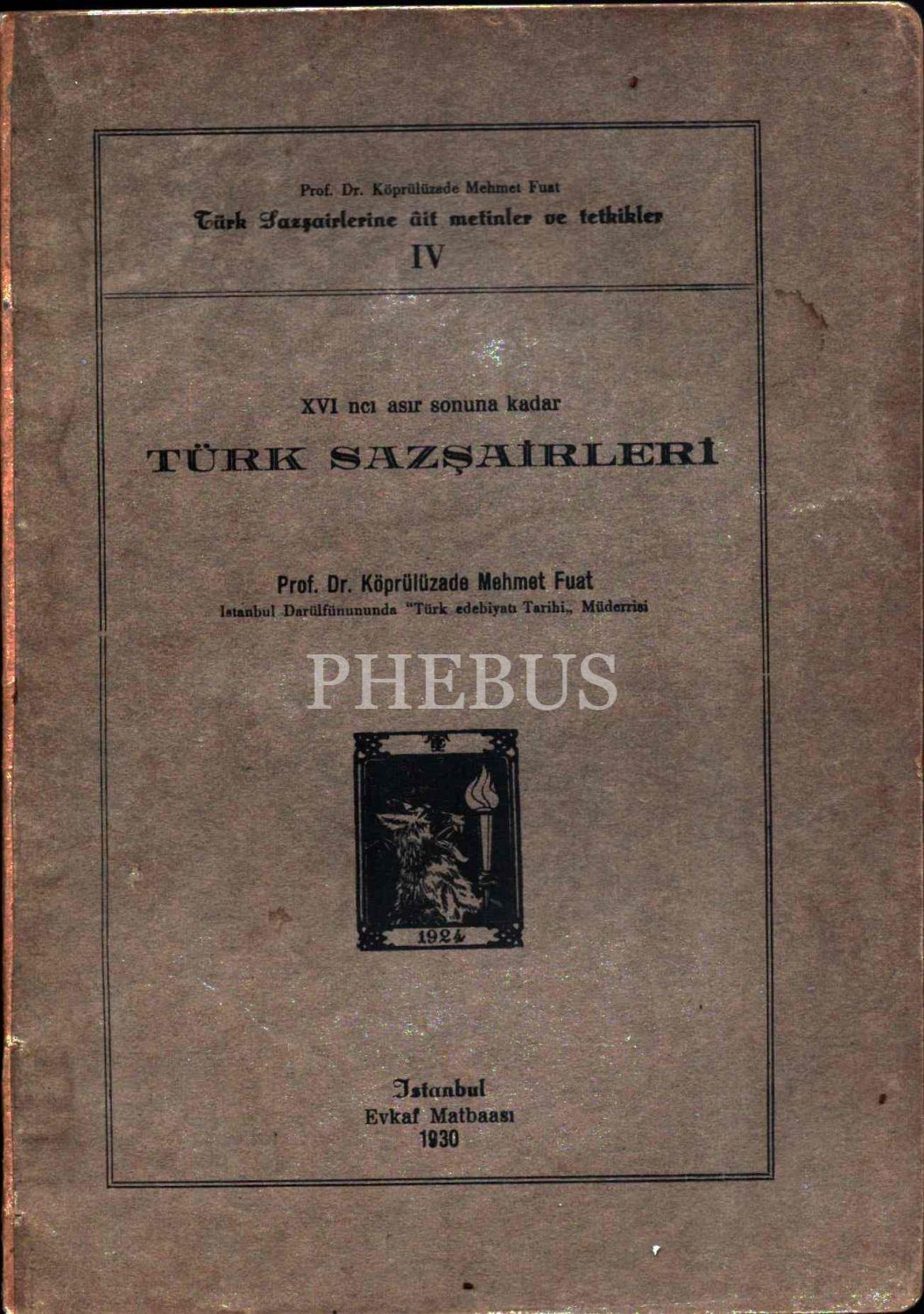 XVI ncı Asır Sonuna Kadar TÜRK SAZŞAİRLERİ, Prof. Dr. Köprülüzade Mehmet Fuat, Evkaf Matbaası, İstanbul - 1930, 69 sayfa, 17x24 cm