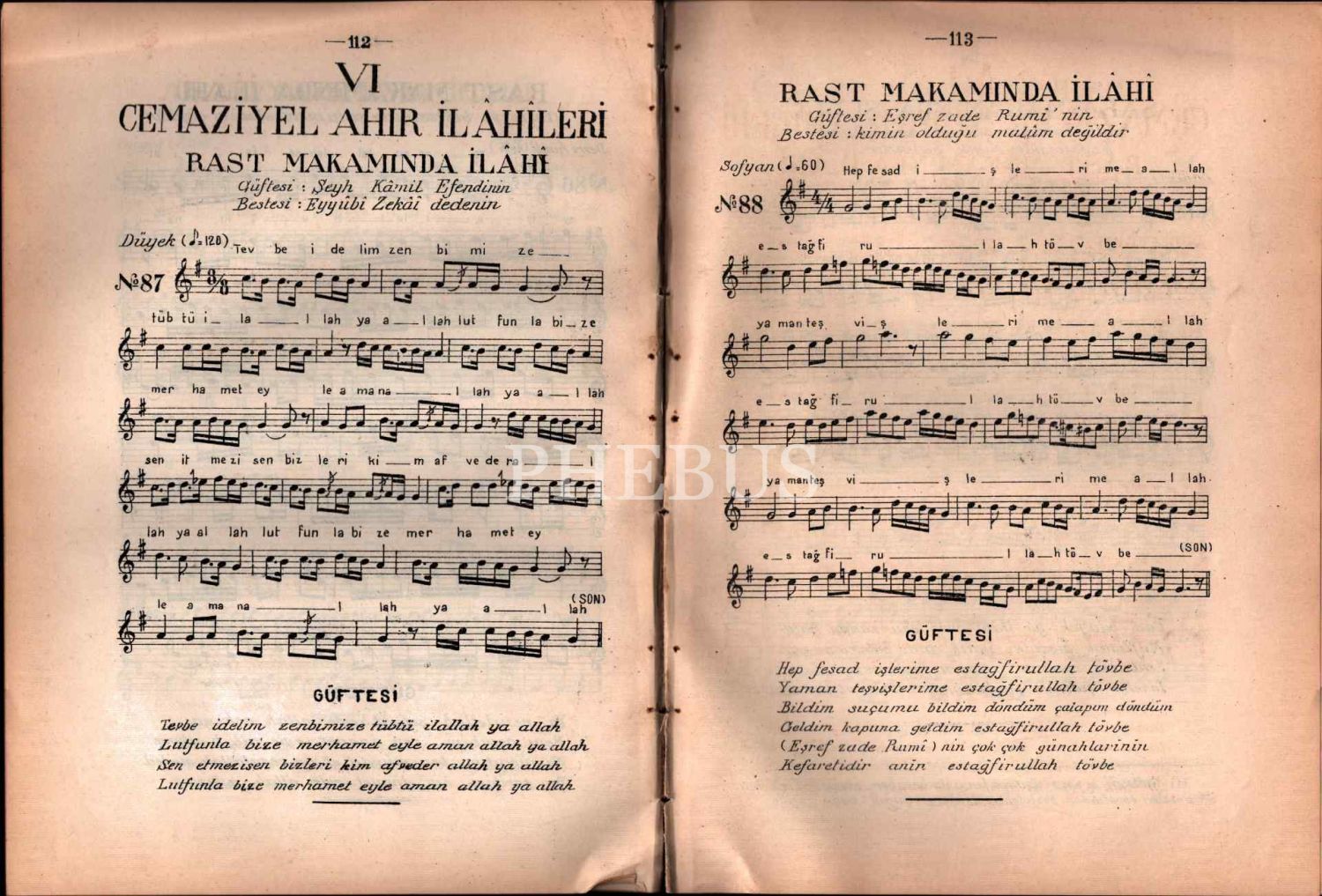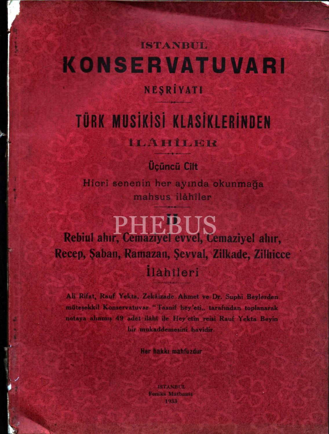 TÜRK MUSİKİSİ KLASİKLERİNDEN İLÂHÎLER (Üçüncü Cilt), İstanbul Konservatuvarı Neşriyatı, Feniks Matbaası, İstanbul - 1933, 46 sayfa, 20x27 cm