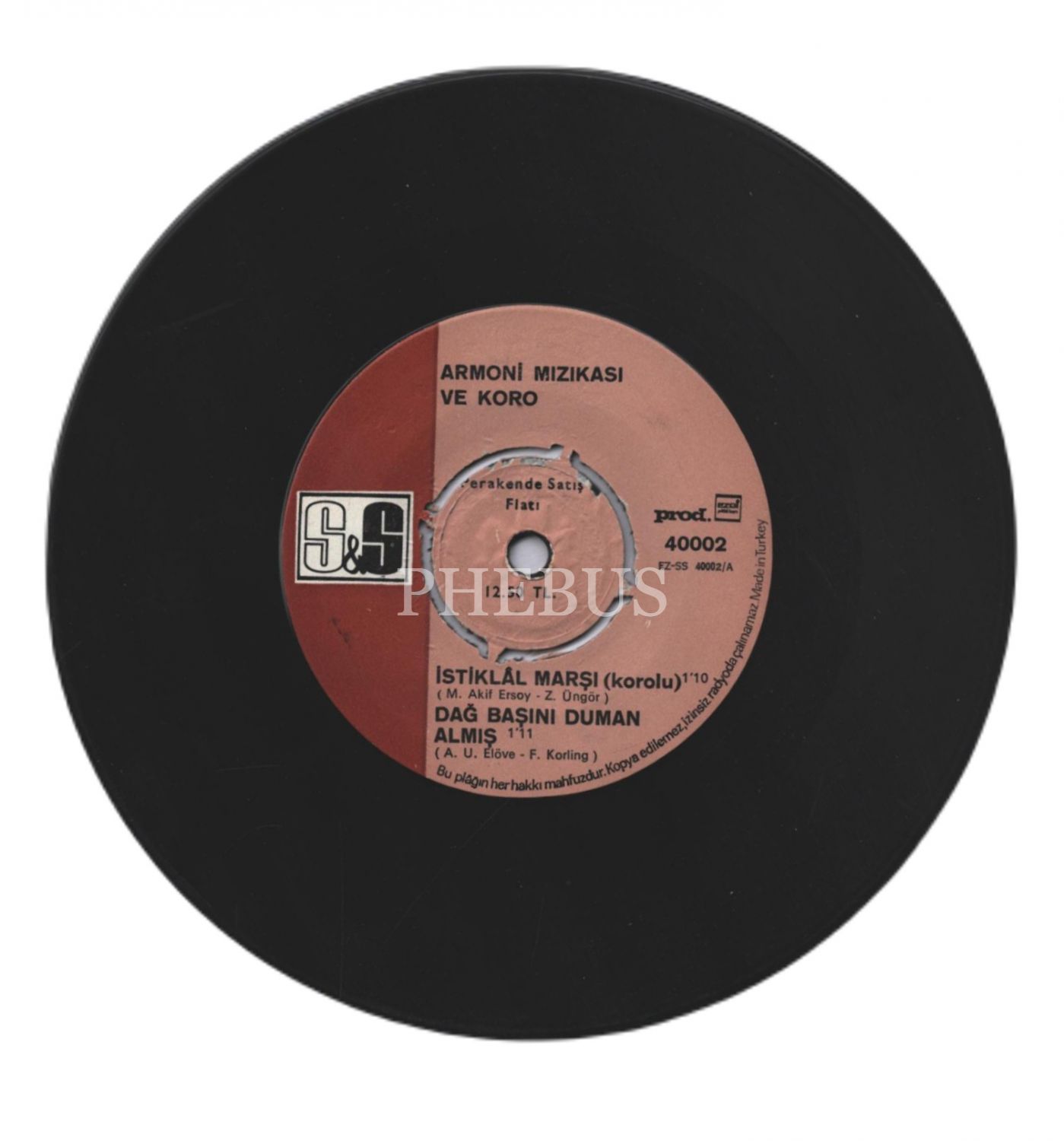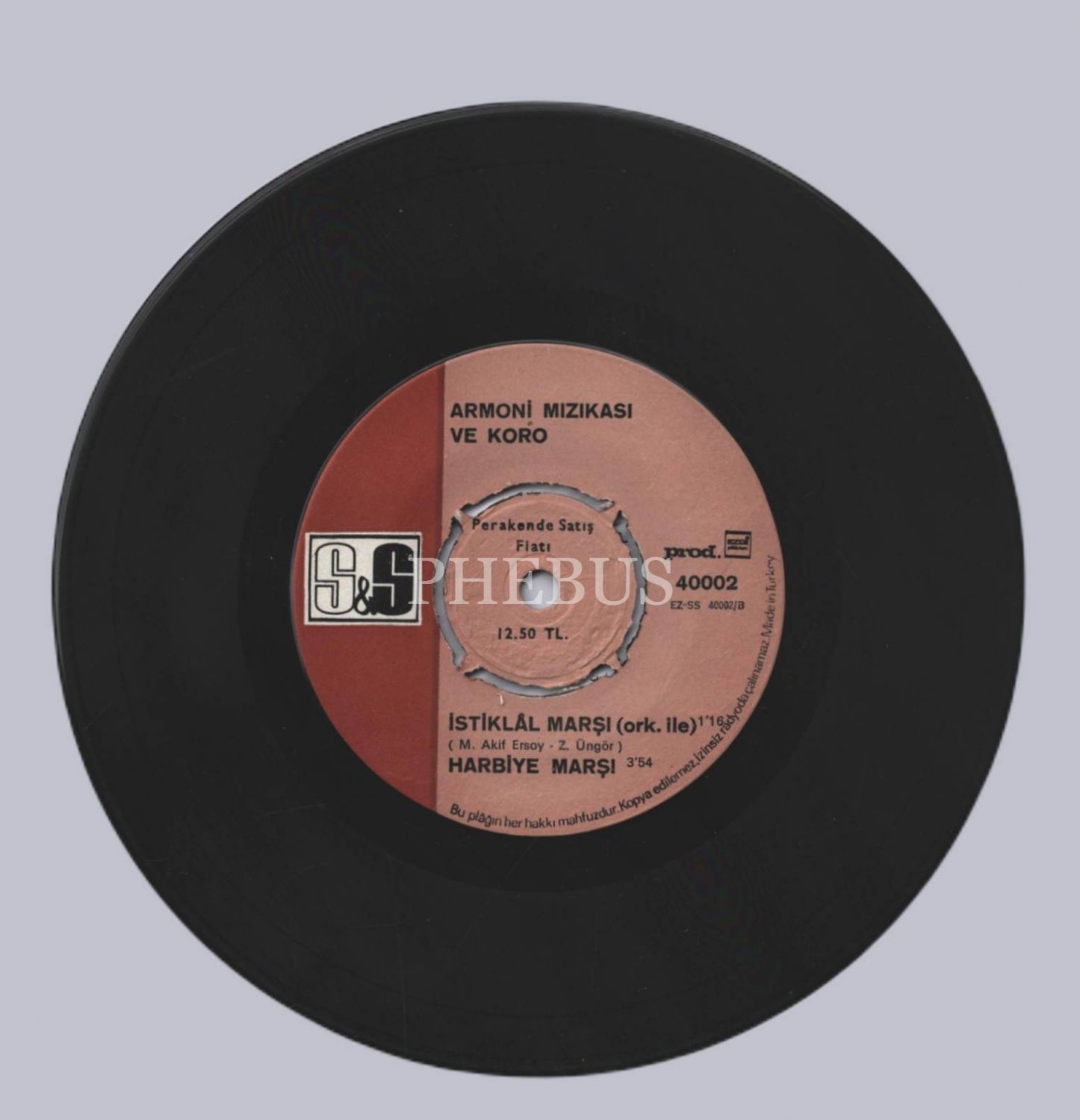 1. A- İstiklâl Marşı (koro ile) - M. Akif Ersoy & Z. Üngör B- Dağ Başını Duman Almış - A. Ulvi Elöve & F. Korling 2. A- İstiklâl Marşı (ork ile) - M. Akif Ersoy & Z. Üngör B- Harbiye Marşı