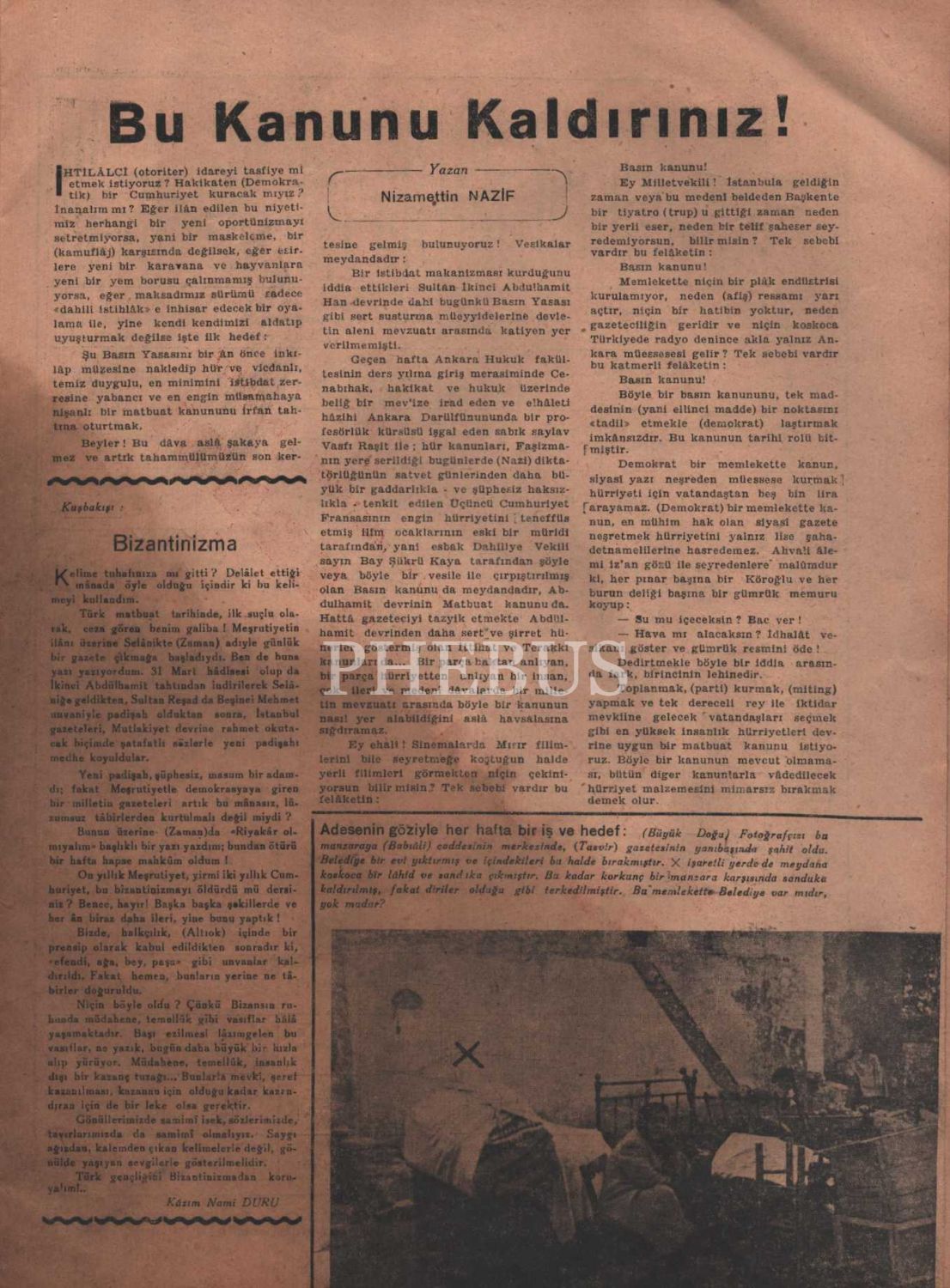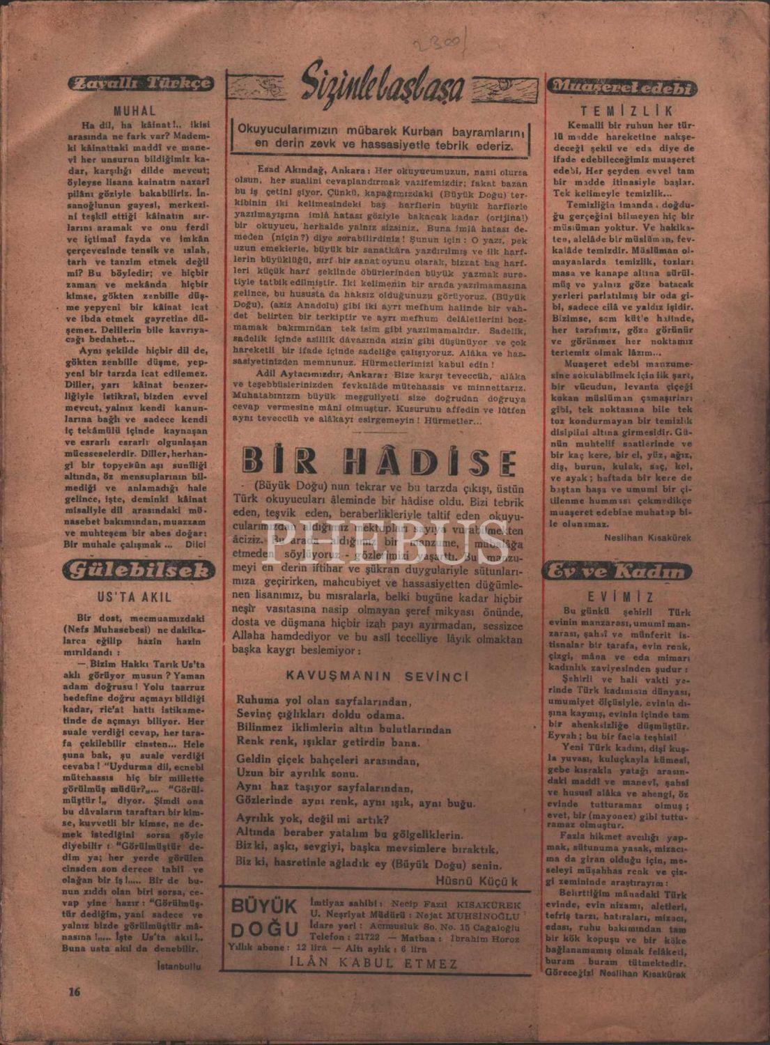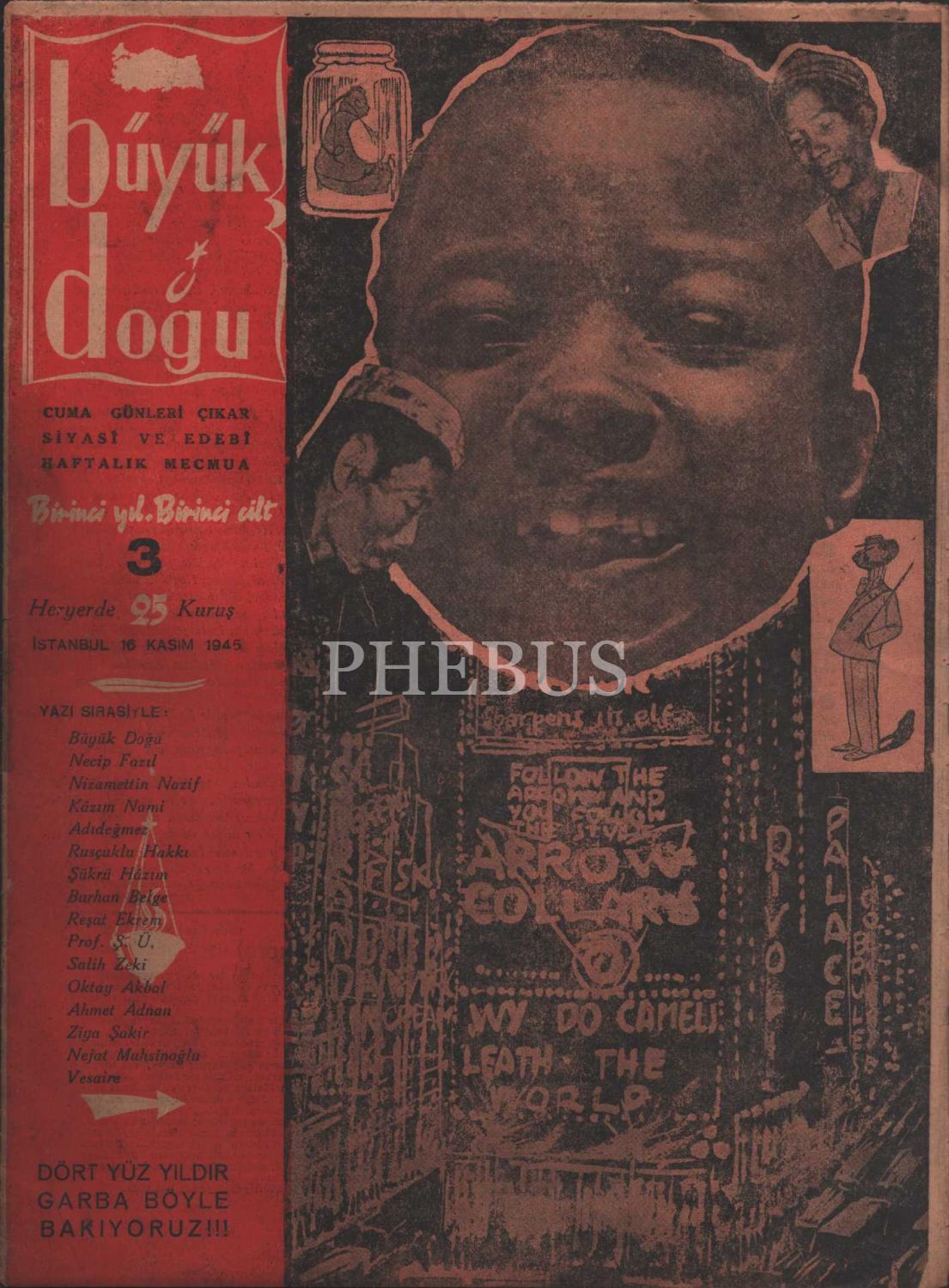 Necip Fazıl Kısakürek´in sahibi olduğu "siyasî ve edebî haftalık mecmua" BÜYÜK DOĞU´nun 16 Kasım 1945 tarihli sayısı, 16 sayfa, 25x35 cm