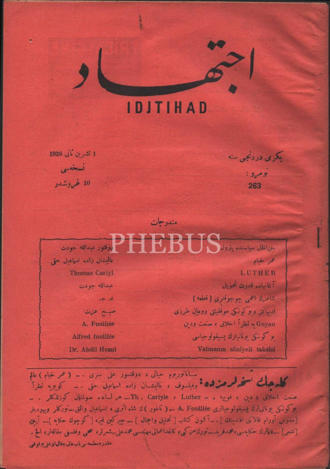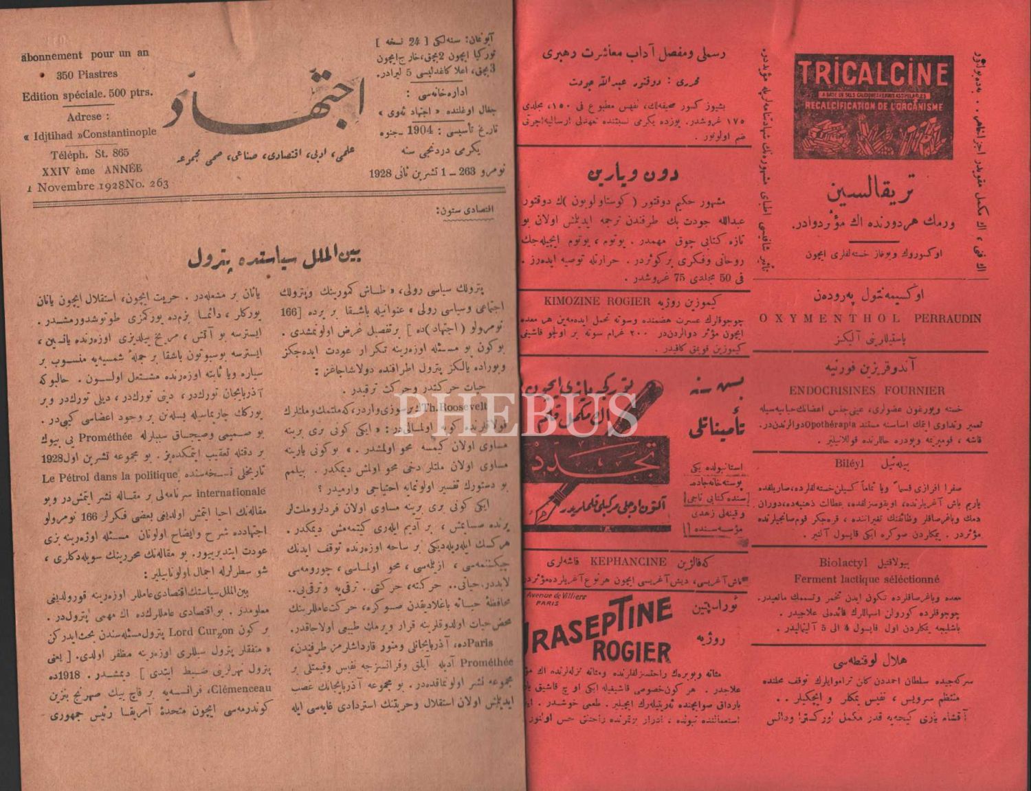 İCTİHÂD´ın 263. sayısı, 1 Teşrinisani 1928, 19x28 cm