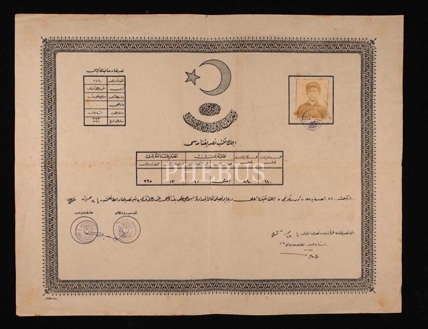 Fotoğraflı ilkokul tasdiknamesi, Üsküdar/İstanbul 1927, 35x45 cm