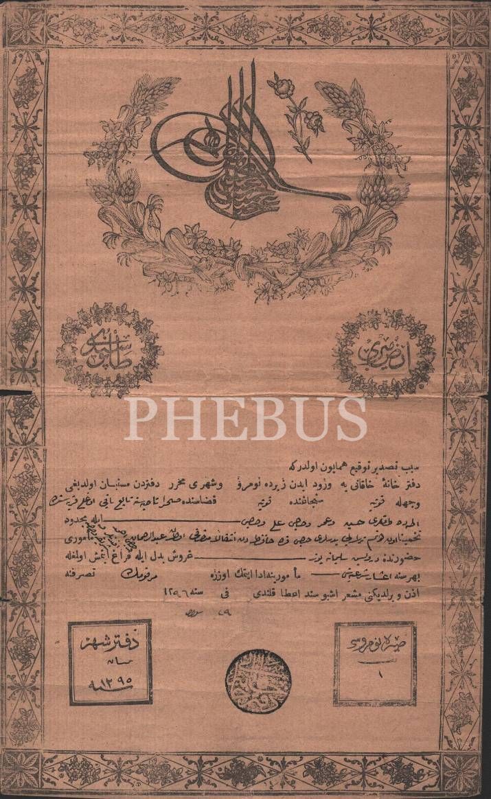 Arz-ı miri tarla tapu senedi, Konya 1296, 18x29 cm