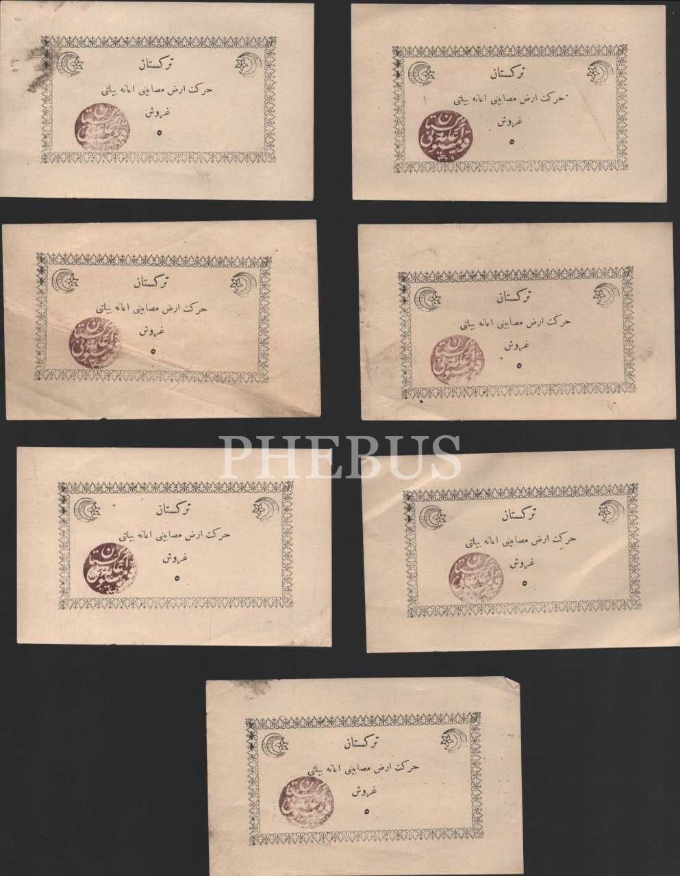 Türkistan İane Komisyonu makbuzları (7 adet), 8x12 cm
