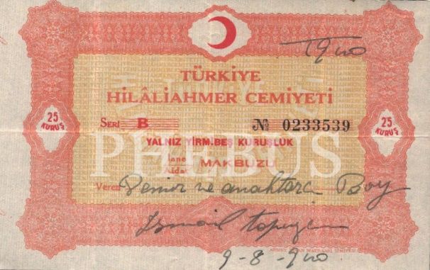 Türkiye Hilâliahmer Cemiyeti makbuzu, 1940, 8x14 cm