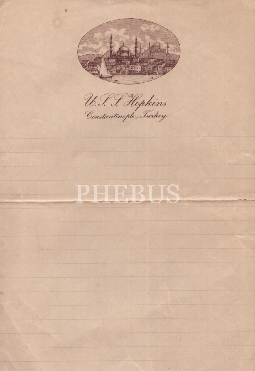 U. S. S. Hopkins- Constantinople, Turkey antetli kâğıt, 15x23 cm