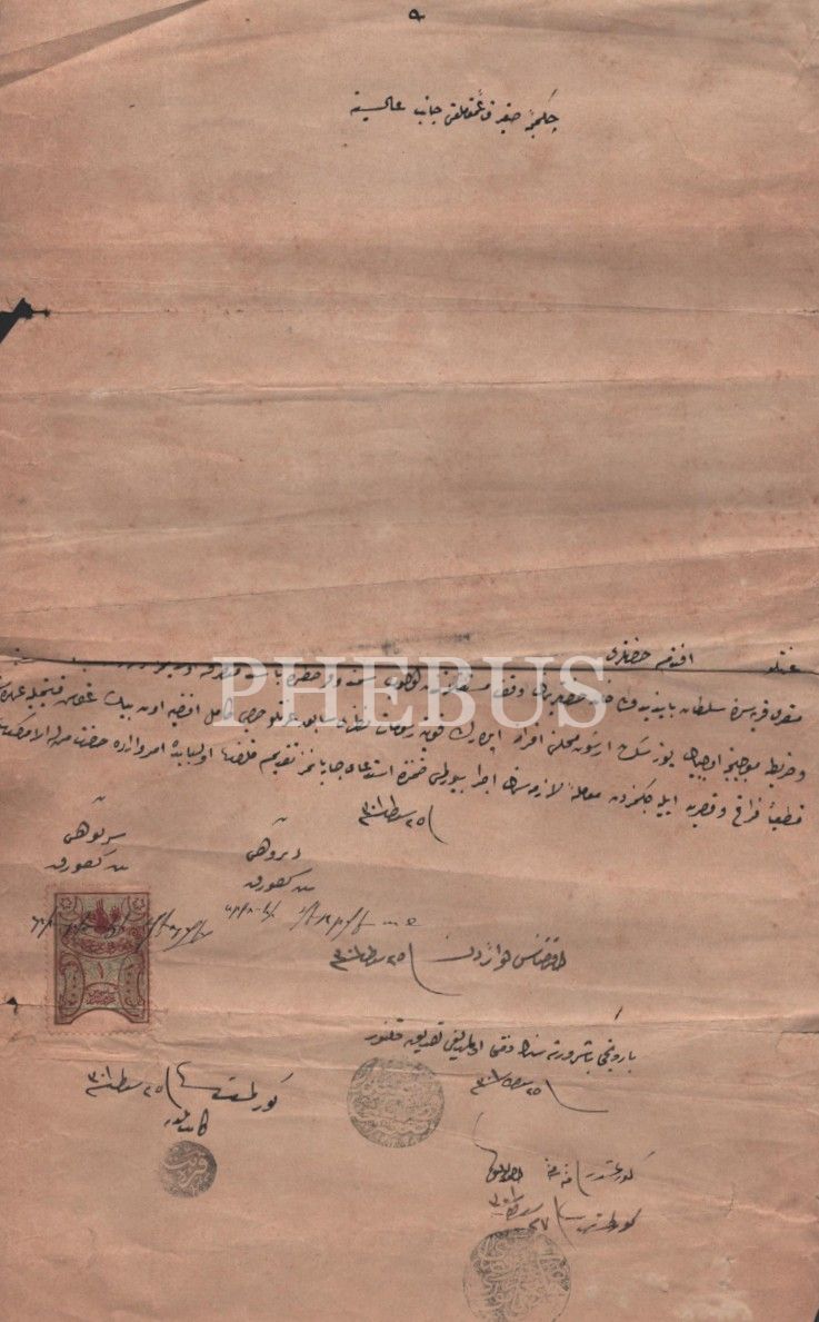 Makriköy [Bakırköy]´de Sultan Bayezid Han vakfı müstakillatından bir tarlanın ferağ senedi, İstanbul 1301, 20x34 cm