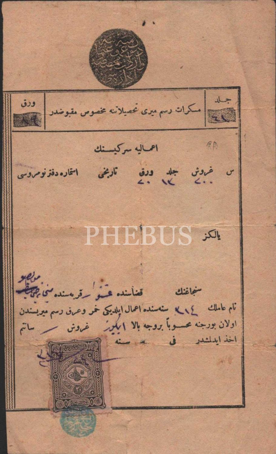 Bir meyhaneciden alınan müskirat resm-i mirisi [vergisi] makbuzu, 1314, 12x20 cm