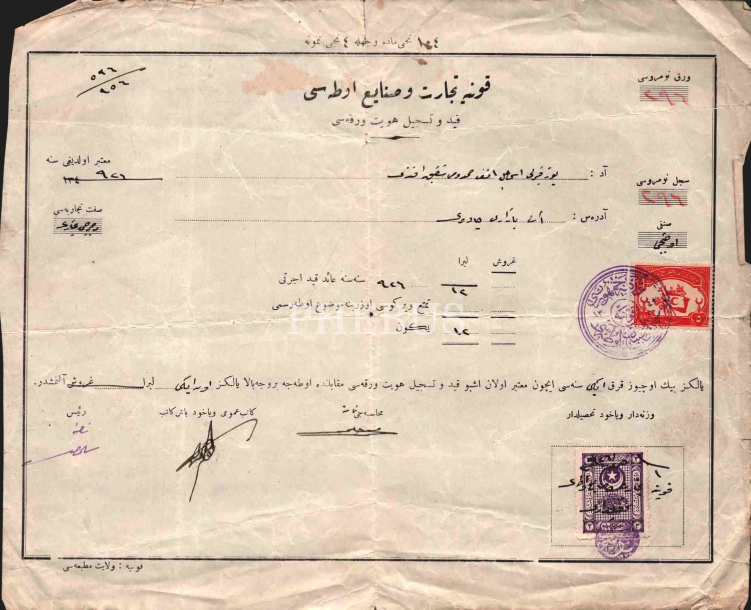 Konya Ticaret ve Sanayi Odası kayıt belgesi, 1926, 23x28 cm