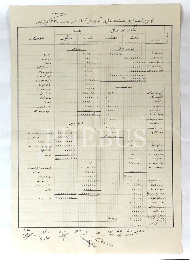 Kooperatif İncir Müstahsılları Anonim Şirketi´nin 1334 Haziran bütçesi, 34x49 cm