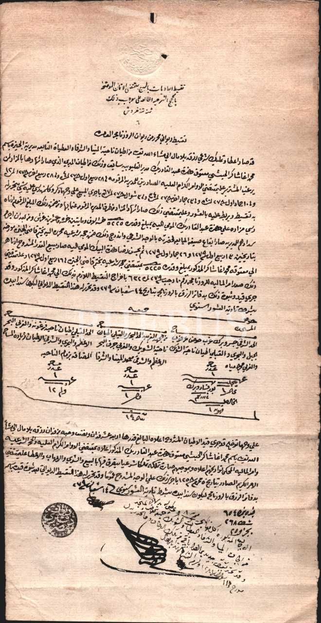 Divan-ı Defterî Mısır mühürlü Arapça mali evrak, 1279, 20x40 cm