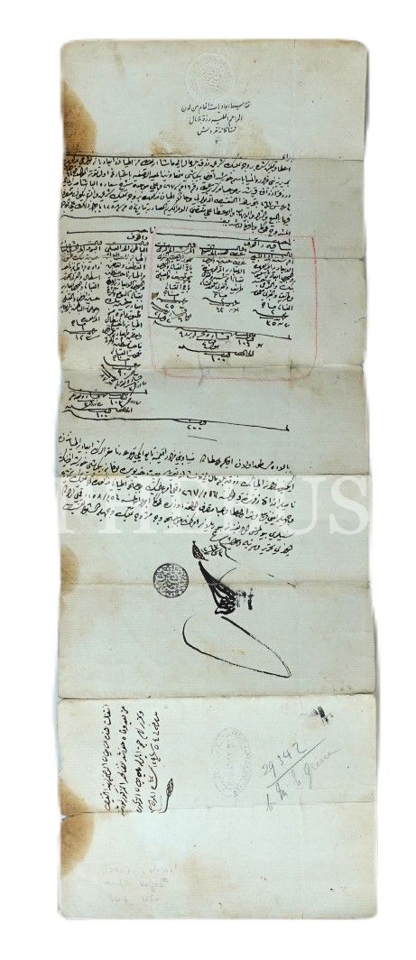 Divan-ı Defterî Mısır mühürlü Arapça-Osmanlıca divani taksit, 1267, 20x57 cm