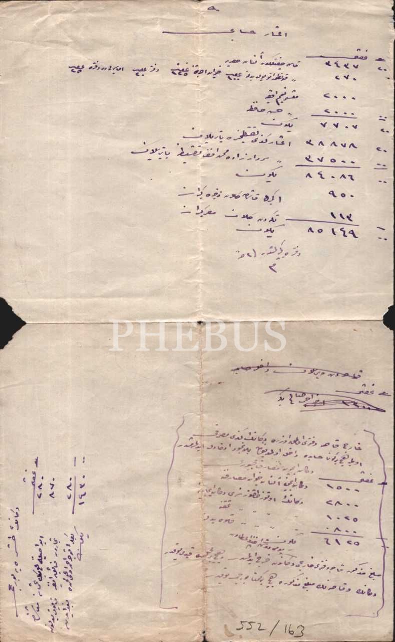 Zahire ve a´şar hesabı, bir dükkânın dış borcu gibi dökümlerin yer aldığı sayfa, 21x34 cm