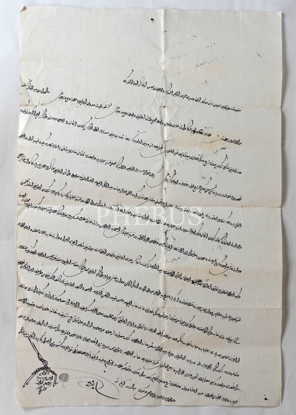 Geride varisi kalmayıp beytülmale ait olan terekelere dair nahiye naibi ve meclis üyelerine hitaben kaleme alınan şer´î evrak, 1265, 36x55 cm