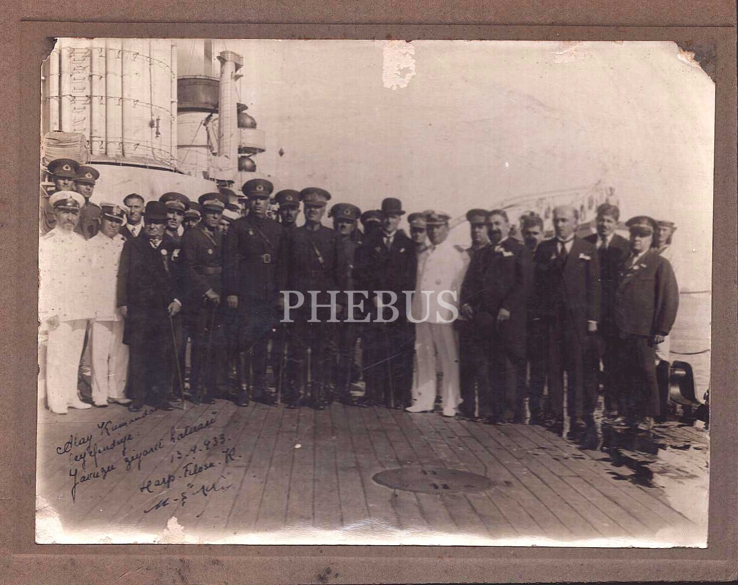 Harp Filosu Komutanlığı´nın Yavuz zırhlısında çekildikleri ithaflı ve imzalı hatıra fotoğrafı, 20x25 cm