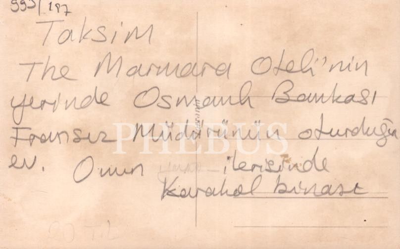 Taksim The Marmara Oteli´nin yerinde Osmanlı Bankası Fransız müdürünün oturduğu ev ve onun ilerisinde karakol binası.