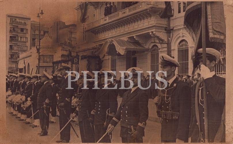Bahriyeli Subaylar ve askeri bandonun tören esnasında çekilen fotoğrafı, 9x14 cm