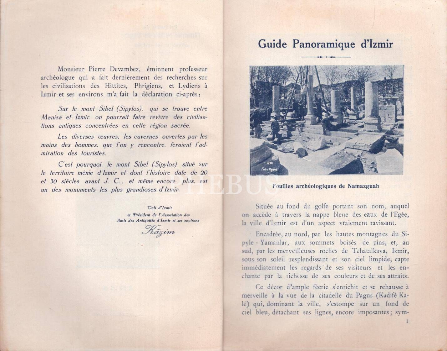 Fransızca GUIDE PANORAMIQUE d´IZMIR, Publication de l´Association des Amis des Antiquites [Eski Eser Dostları Derneği Yayını], 1934, 46 s., 13x19 cm